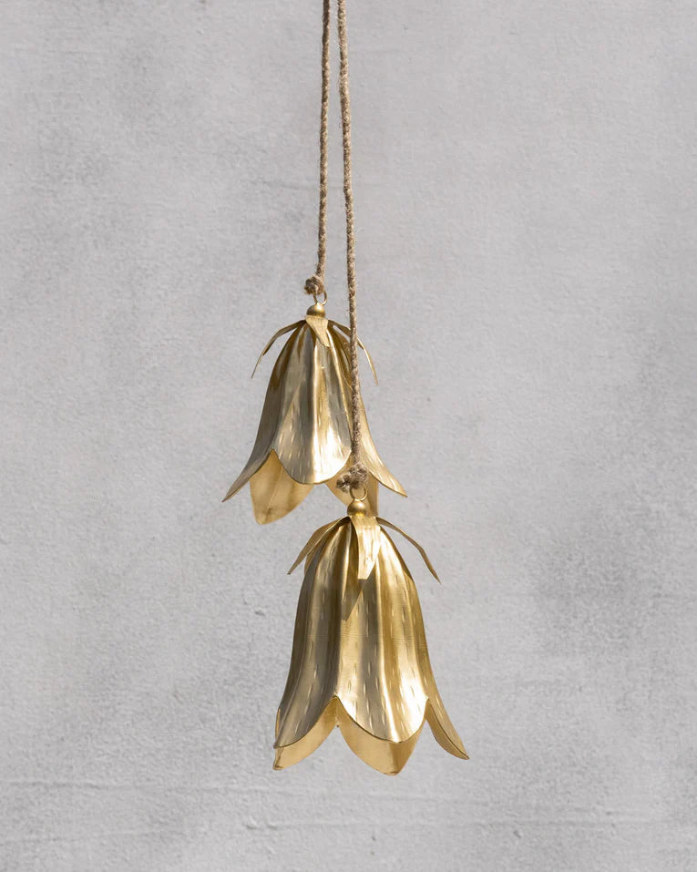 Inspired by the blooms of Zanzibar, the Botanical Bell is finished in gold and hangs at the end of a looped rope, adding to spaces with its charming design.