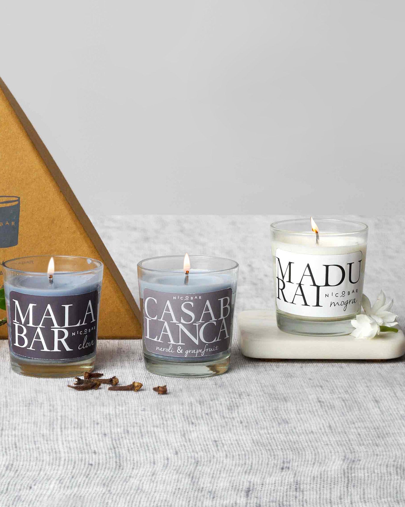 • The perfect gifting piece that's meant to be giftwrapped beautifully, our set of three scented candles add a touch of dreaminess to an ordinary evening (or afternoon)