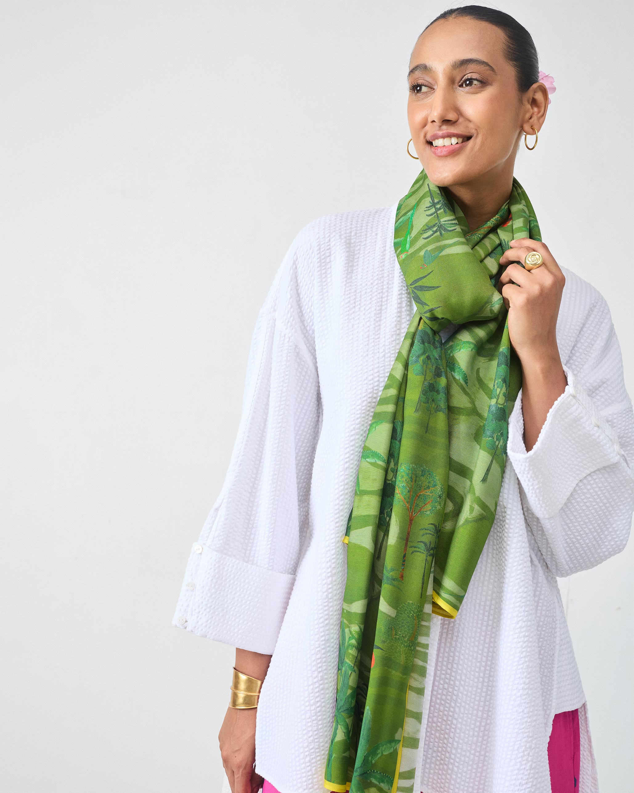 {"id":7946372612276,"title":"Paddy Scarf - Green","handle":"paddy-scarf-green","description":"\u003cul\u003e\n\u003cli\u003eThe Paddy Scarf traces a journey through swaying trees, soaring parrots, and majestic elephants.\n\u003c\/li\u003e\n\u003cli\u003eA flash of bright florals cuts through the green, framed by a yellow edge. Finished with beaded tassels, it's a forest in motion.\n\u003c\/li\u003e\n\u003cli\u003eLight, breezy, and effortlessly chic, this scarf is perfect for summer styling.\u003c\/li\u003e\n\u003c\/ul\u003e","published_at":"2025-05-21T11:18:33+05:30","created_at":"2025-05-20T13:27:17+05:30","vendor":"Nicobar","type":"Scarves","tags":["COLLECTION_Safar","Filtercategory_Accessories","Material Group_Cupro modal","MATERIAL_50% Cupro \u0026 50% Modal","notify_me_on","paddy-scarf-greenNBI045499","pdpcollection_Safar","Product_Others","sale_eoss13jun25","sale_eoss25jun25","sale_eoss25jun25_1","Traveledit_EOSSjul'25"],"price":4500,"price_min":4500,"price_max":4500,"available":true,"price_varies":false,"compare_at_price":null,"compare_at_price_min":0,"compare_at_price_max":0,"compare_at_price_varies":false,"variants":[{"id":43924010107060,"title":"Green \/ 54 cm x 204 cm","option1":"Green","option2":"54 cm x 204 cm","option3":null,"sku":"NBI045499","requires_shipping":true,"taxable":true,"featured_image":null,"available":true,"name":"Paddy Scarf - Green - Green \/ 54 cm x 204 cm","public_title":"Green \/ 54 cm x 204 cm","options":["Green","54 cm x 204 cm"],"price":4500,"weight":0,"compare_at_price":null,"inventory_management":"shopify","barcode":null,"requires_selling_plan":false,"selling_plan_allocations":[],"quantity_rule":{"min":1,"max":null,"increment":1}}],"images":["\/\/global.nicobar.com\/cdn\/shop\/files\/NBI045499_1.jpg?v=1747728013","\/\/global.nicobar.com\/cdn\/shop\/files\/NBI045499_2.jpg?v=1747728013","\/\/global.nicobar.com\/cdn\/shop\/files\/NBI045499_3.jpg?v=1747728013"],"featured_image":"\/\/global.nicobar.com\/cdn\/shop\/files\/NBI045499_1.jpg?v=1747728013","options":["Color","Size"],"media":[{"alt":null,"id":31570109137076,"position":1,"preview_image":{"aspect_ratio":0.8,"height":2574,"width":2058,"src":"\/\/global.nicobar.com\/cdn\/shop\/files\/NBI045499_1.jpg?v=1747728013"},"aspect_ratio":0.8,"height":2574,"media_type":"image","src":"\/\/global.nicobar.com\/cdn\/shop\/files\/NBI045499_1.jpg?v=1747728013","width":2058},{"alt":null,"id":31570109169844,"position":2,"preview_image":{"aspect_ratio":0.8,"height":2574,"width":2058,"src":"\/\/global.nicobar.com\/cdn\/shop\/files\/NBI045499_2.jpg?v=1747728013"},"aspect_ratio":0.8,"height":2574,"media_type":"image","src":"\/\/global.nicobar.com\/cdn\/shop\/files\/NBI045499_2.jpg?v=1747728013","width":2058},{"alt":null,"id":31570109202612,"position":3,"preview_image":{"aspect_ratio":0.8,"height":2574,"width":2058,"src":"\/\/global.nicobar.com\/cdn\/shop\/files\/NBI045499_3.jpg?v=1747728013"},"aspect_ratio":0.8,"height":2574,"media_type":"image","src":"\/\/global.nicobar.com\/cdn\/shop\/files\/NBI045499_3.jpg?v=1747728013","width":2058}],"requires_selling_plan":false,"selling_plan_groups":[],"content":"\u003cul\u003e\n\u003cli\u003eThe Paddy Scarf traces a journey through swaying trees, soaring parrots, and majestic elephants.\n\u003c\/li\u003e\n\u003cli\u003eA flash of bright florals cuts through the green, framed by a yellow edge. Finished with beaded tassels, it's a forest in motion.\n\u003c\/li\u003e\n\u003cli\u003eLight, breezy, and effortlessly chic, this scarf is perfect for summer styling.\u003c\/li\u003e\n\u003c\/ul\u003e"}
