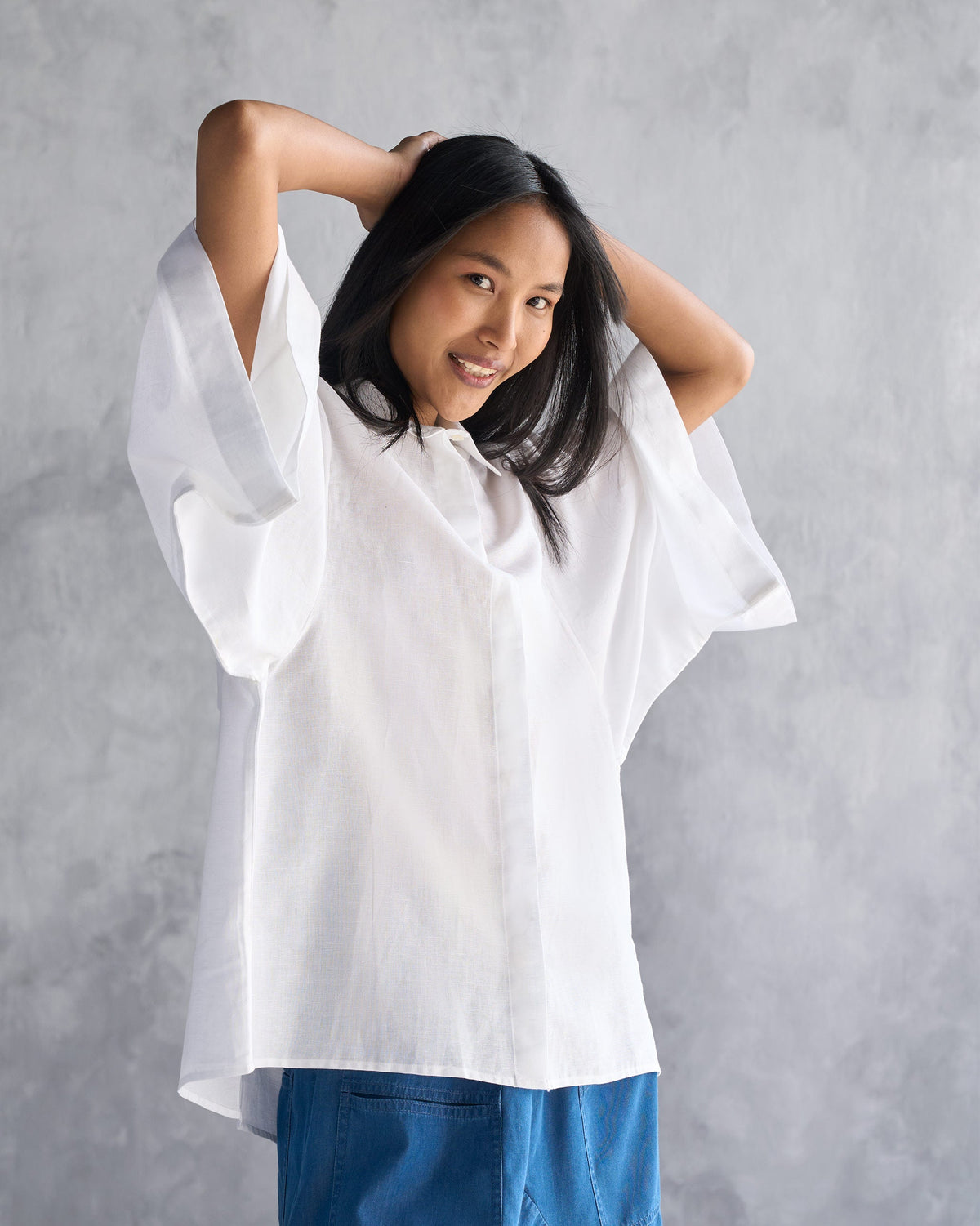 A set of two of our signature styles, the Drop Armhole Shirt and Basic Pyjamas in white, the perfect pair for lounging.