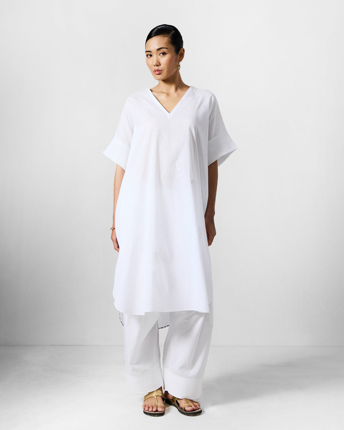 {"id":8027784675508,"title":"The Calicut Kurta Set - White","handle":"the-calicut-kurta-set-white","description":"\u003cul\u003e\n\u003cli\u003eThe Calicut Kurta Set brings together the Calicut Kurta and Numa Pants in crisp white, elevated through small crafted accents.\n\u003c\/li\u003e\n\u003cli\u003eThe kurta features white on white chikankari, a moon patch in red checks, smocking on the cap sleeves, and a high low hem with charcoal check piping.\n\u003c\/li\u003e\n\u003cli\u003eThe pants are cut in organic cotton voile, finished with a blue striped selvedge running along the side seam.\n\u003c\/li\u003e\n\u003cli\u003eClean, light, and detailed up close, this set balances contrast and summer ease.\u003c\/li\u003e\n\u003c\/ul\u003e","published_at":"2026-02-11T14:20:02+05:30","created_at":"2026-02-05T10:20:17+05:30","vendor":"Nicobar","type":"shop-bundle","tags":["apparel_product","badge_New","COLLECTION_ Sindhu","coordsets","Filtercategory_Women","Filterclass_Co-ord sets","Filtersubcategory_Co-ord sets","metafield_sync","pdpcollection_Sindhu","the-calicut-kurta-set-whiteBUNDLE280"],"price":0,"price_min":0,"price_max":0,"available":true,"price_varies":false,"compare_at_price":null,"compare_at_price_min":0,"compare_at_price_max":0,"compare_at_price_varies":false,"variants":[{"id":44140002607284,"title":"White","option1":"White","option2":null,"option3":null,"sku":"BUNDLE280","requires_shipping":true,"taxable":true,"featured_image":null,"available":true,"name":"The Calicut Kurta Set - White - White","public_title":"White","options":["White"],"price":0,"weight":0,"compare_at_price":null,"inventory_management":null,"barcode":null,"requires_selling_plan":false,"selling_plan_allocations":[],"quantity_rule":{"min":1,"max":null,"increment":1}}],"images":["\/\/global.nicobar.com\/cdn\/shop\/files\/1_07b75941-75de-4db2-9fd8-6aac7d146cc1.jpg?v=1770634802","\/\/global.nicobar.com\/cdn\/shop\/files\/2_f1ec57ea-ff82-4042-9f5f-e16700309d72.jpg?v=1770634802","\/\/global.nicobar.com\/cdn\/shop\/files\/3_8a791881-7738-455b-a8b3-8c048d6f5988.jpg?v=1770634801","\/\/global.nicobar.com\/cdn\/shop\/files\/4_4e392dcc-b577-4d70-bb42-92f2e0b800b6.jpg?v=1770634801","\/\/global.nicobar.com\/cdn\/shop\/files\/5_72c7b9dc-68fc-4adf-a360-eb85b2466ff6.jpg?v=1770634802","\/\/global.nicobar.com\/cdn\/shop\/files\/6_c153910b-0339-4a23-89ef-de0b1725c0a0.jpg?v=1770634801","\/\/global.nicobar.com\/cdn\/shop\/files\/7_5a5a5257-df6b-40bd-9f65-b559967453e3.jpg?v=1770634801"],"featured_image":"\/\/global.nicobar.com\/cdn\/shop\/files\/1_07b75941-75de-4db2-9fd8-6aac7d146cc1.jpg?v=1770634802","options":["Color"],"media":[{"alt":null,"id":32657779294388,"position":1,"preview_image":{"aspect_ratio":0.8,"height":2574,"width":2058,"src":"\/\/global.nicobar.com\/cdn\/shop\/files\/1_07b75941-75de-4db2-9fd8-6aac7d146cc1.jpg?v=1770634802"},"aspect_ratio":0.8,"height":2574,"media_type":"image","src":"\/\/global.nicobar.com\/cdn\/shop\/files\/1_07b75941-75de-4db2-9fd8-6aac7d146cc1.jpg?v=1770634802","width":2058},{"alt":null,"id":32657779327156,"position":2,"preview_image":{"aspect_ratio":0.8,"height":2574,"width":2058,"src":"\/\/global.nicobar.com\/cdn\/shop\/files\/2_f1ec57ea-ff82-4042-9f5f-e16700309d72.jpg?v=1770634802"},"aspect_ratio":0.8,"height":2574,"media_type":"image","src":"\/\/global.nicobar.com\/cdn\/shop\/files\/2_f1ec57ea-ff82-4042-9f5f-e16700309d72.jpg?v=1770634802","width":2058},{"alt":null,"id":32657779359924,"position":3,"preview_image":{"aspect_ratio":0.8,"height":2574,"width":2058,"src":"\/\/global.nicobar.com\/cdn\/shop\/files\/3_8a791881-7738-455b-a8b3-8c048d6f5988.jpg?v=1770634801"},"aspect_ratio":0.8,"height":2574,"media_type":"image","src":"\/\/global.nicobar.com\/cdn\/shop\/files\/3_8a791881-7738-455b-a8b3-8c048d6f5988.jpg?v=1770634801","width":2058},{"alt":null,"id":32657779392692,"position":4,"preview_image":{"aspect_ratio":0.8,"height":2574,"width":2058,"src":"\/\/global.nicobar.com\/cdn\/shop\/files\/4_4e392dcc-b577-4d70-bb42-92f2e0b800b6.jpg?v=1770634801"},"aspect_ratio":0.8,"height":2574,"media_type":"image","src":"\/\/global.nicobar.com\/cdn\/shop\/files\/4_4e392dcc-b577-4d70-bb42-92f2e0b800b6.jpg?v=1770634801","width":2058},{"alt":null,"id":32657779425460,"position":5,"preview_image":{"aspect_ratio":0.8,"height":2574,"width":2058,"src":"\/\/global.nicobar.com\/cdn\/shop\/files\/5_72c7b9dc-68fc-4adf-a360-eb85b2466ff6.jpg?v=1770634802"},"aspect_ratio":0.8,"height":2574,"media_type":"image","src":"\/\/global.nicobar.com\/cdn\/shop\/files\/5_72c7b9dc-68fc-4adf-a360-eb85b2466ff6.jpg?v=1770634802","width":2058},{"alt":null,"id":32657779458228,"position":6,"preview_image":{"aspect_ratio":0.8,"height":2574,"width":2058,"src":"\/\/global.nicobar.com\/cdn\/shop\/files\/6_c153910b-0339-4a23-89ef-de0b1725c0a0.jpg?v=1770634801"},"aspect_ratio":0.8,"height":2574,"media_type":"image","src":"\/\/global.nicobar.com\/cdn\/shop\/files\/6_c153910b-0339-4a23-89ef-de0b1725c0a0.jpg?v=1770634801","width":2058},{"alt":null,"id":32657779490996,"position":7,"preview_image":{"aspect_ratio":0.8,"height":2574,"width":2058,"src":"\/\/global.nicobar.com\/cdn\/shop\/files\/7_5a5a5257-df6b-40bd-9f65-b559967453e3.jpg?v=1770634801"},"aspect_ratio":0.8,"height":2574,"media_type":"image","src":"\/\/global.nicobar.com\/cdn\/shop\/files\/7_5a5a5257-df6b-40bd-9f65-b559967453e3.jpg?v=1770634801","width":2058}],"requires_selling_plan":false,"selling_plan_groups":[],"content":"\u003cul\u003e\n\u003cli\u003eThe Calicut Kurta Set brings together the Calicut Kurta and Numa Pants in crisp white, elevated through small crafted accents.\n\u003c\/li\u003e\n\u003cli\u003eThe kurta features white on white chikankari, a moon patch in red checks, smocking on the cap sleeves, and a high low hem with charcoal check piping.\n\u003c\/li\u003e\n\u003cli\u003eThe pants are cut in organic cotton voile, finished with a blue striped selvedge running along the side seam.\n\u003c\/li\u003e\n\u003cli\u003eClean, light, and detailed up close, this set balances contrast and 