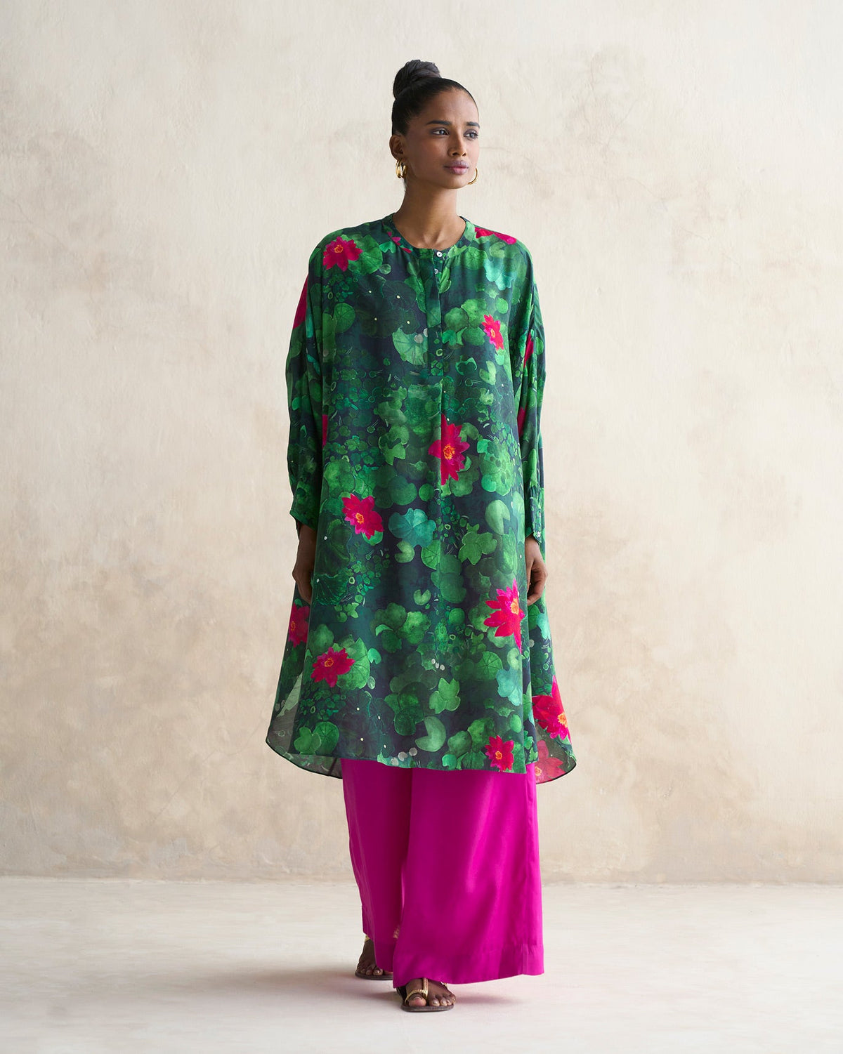 • Light, cupro modal, crafted beautifully, with batwinged sleeves for style. Inspired by the vibrant lotus ponds of Bali, Nicobar’s Lazy Sunday tunic is a keeper.