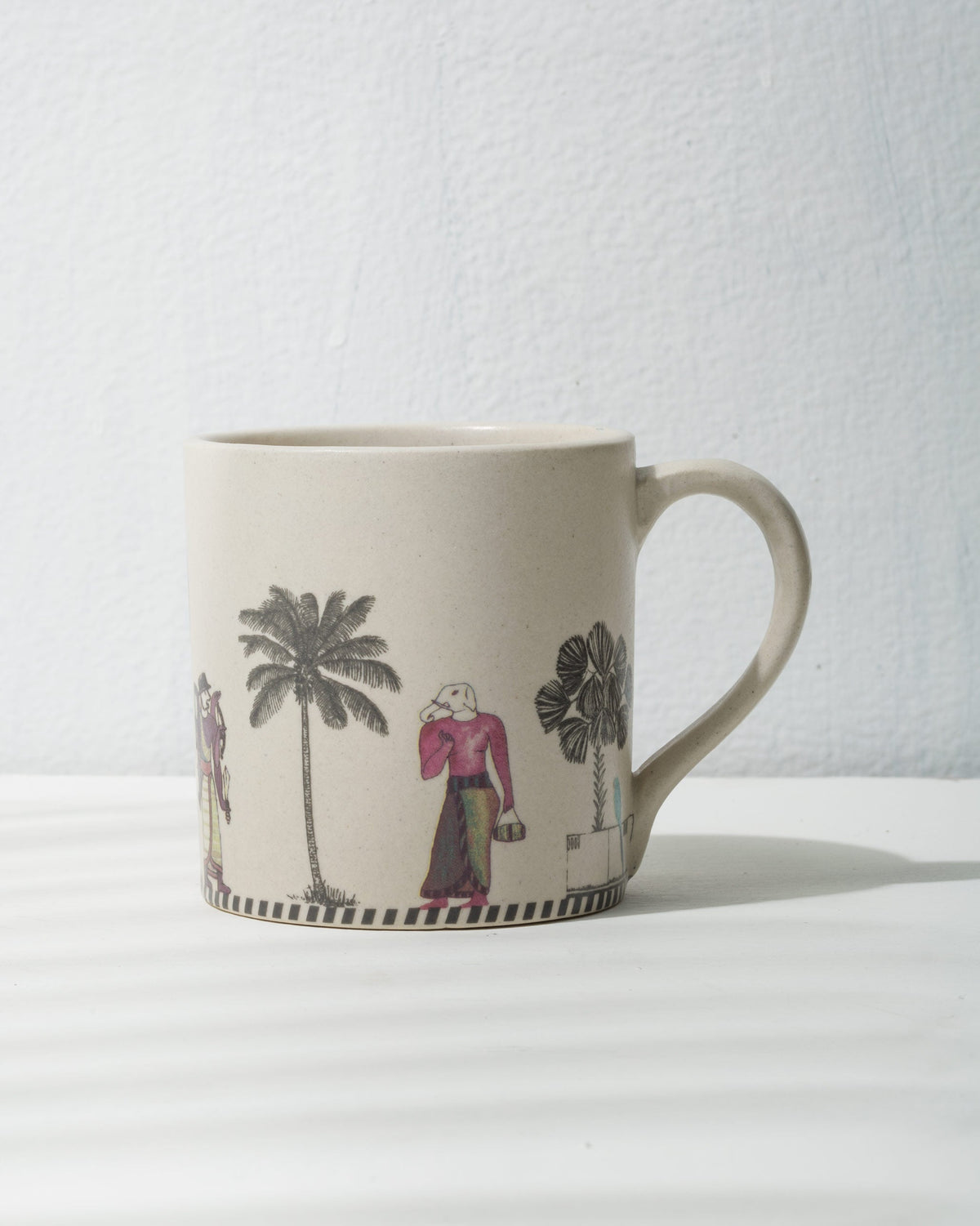 Devils, demons, and villians sit perfectly with Geoffery Bawa buildings and palm trees in this beauitful mug that pays homage to Sri Lanka's rich mythology and architecture