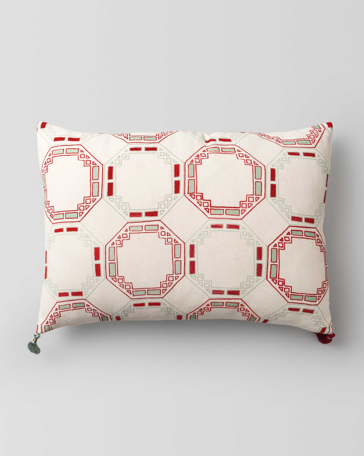 • Covered in a beautiful geometric Chinese inspired print, we're reaching for this cushion when we want to get our zen on