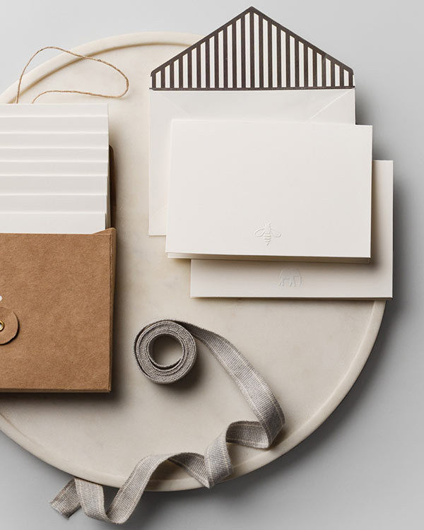 There are gilded stickers, ten cards embossed with little motifs picked out on our travels, and ten envelopes with a fun printed flap, making it a cohesive little bundle