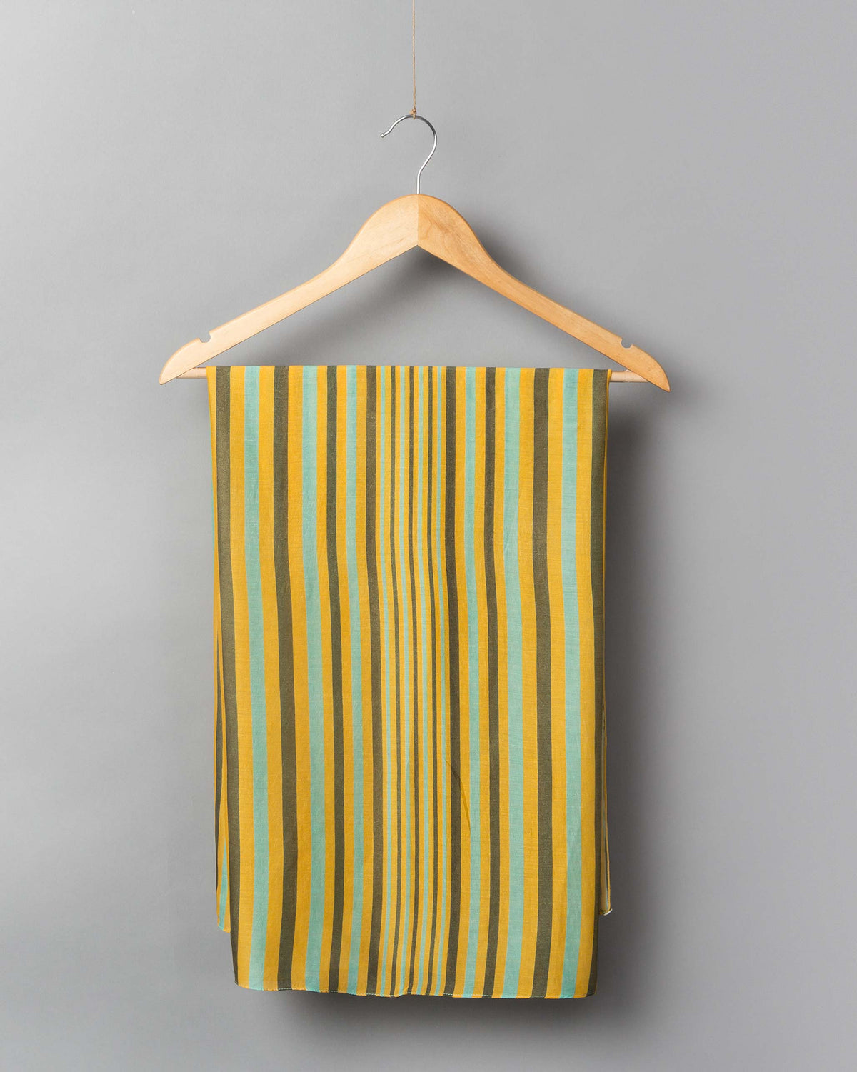 • With it's happy yellow hues and charcoal and aqua stripes, this bright piece in soft silk, is the perfect addition to your travel wardrobe.