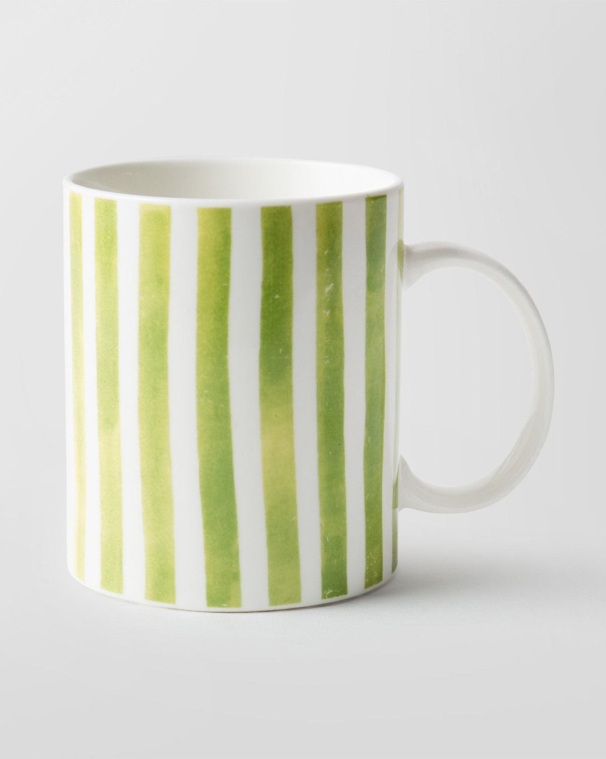 • This porcelain mug, with its handmade graphic design, is a stylish addition to any kitchen cupboard.