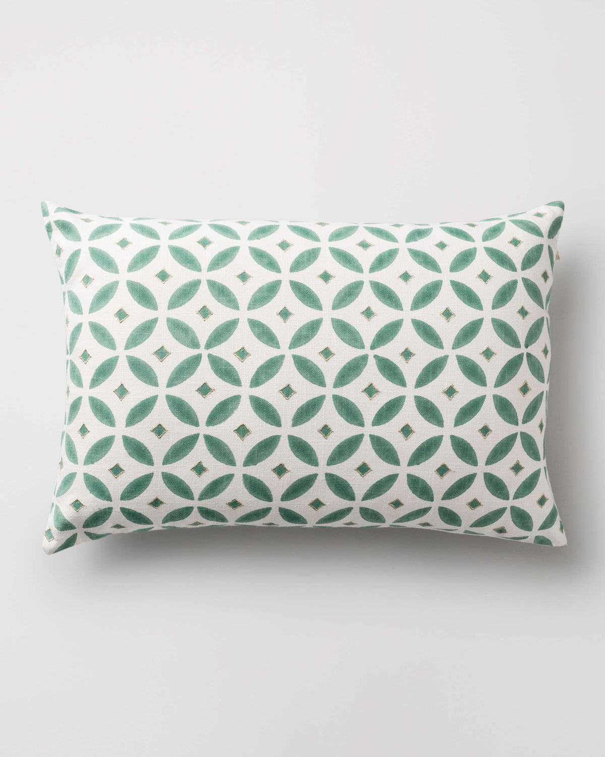Keep the blues at bay, by sinking into this patterned cushion in muted jade and ivory, or create a soft spot of your own by pairing it with our Kimidori and Octa cushions