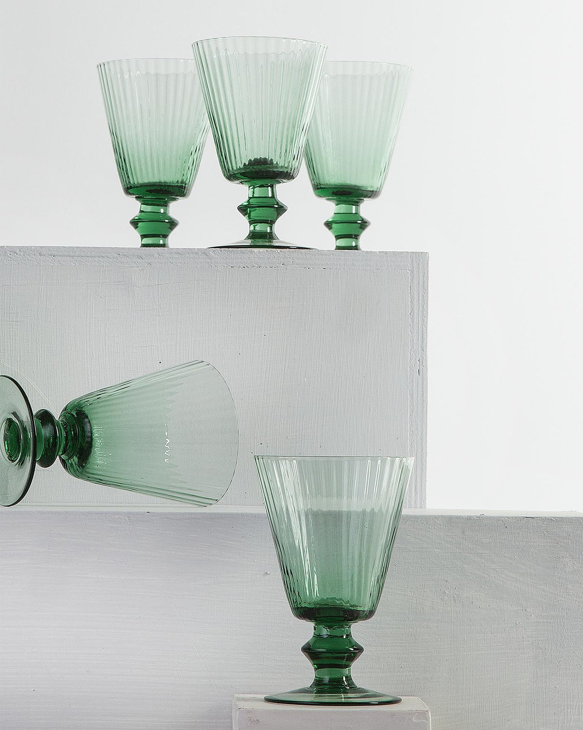 • A ridged set of water glasses with flared rims and pleasing sea green pigment tinting surfaces, our Istanbul variety are great for entertaining and every day use.