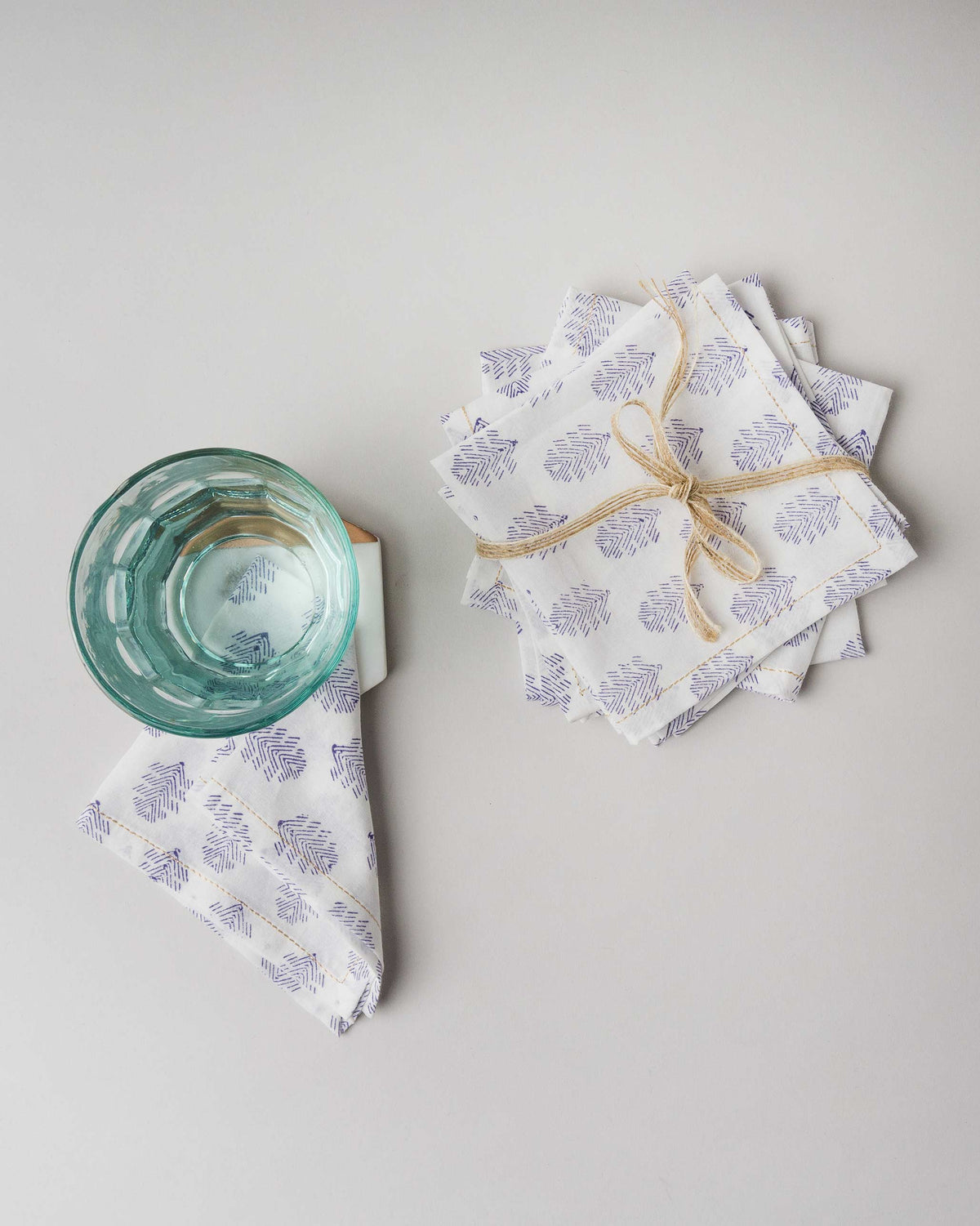 • Gossamer thin, super soft, and with the prettiest block printed detail, this set of 6 napkins comes in one colour - lavender on an ivory base