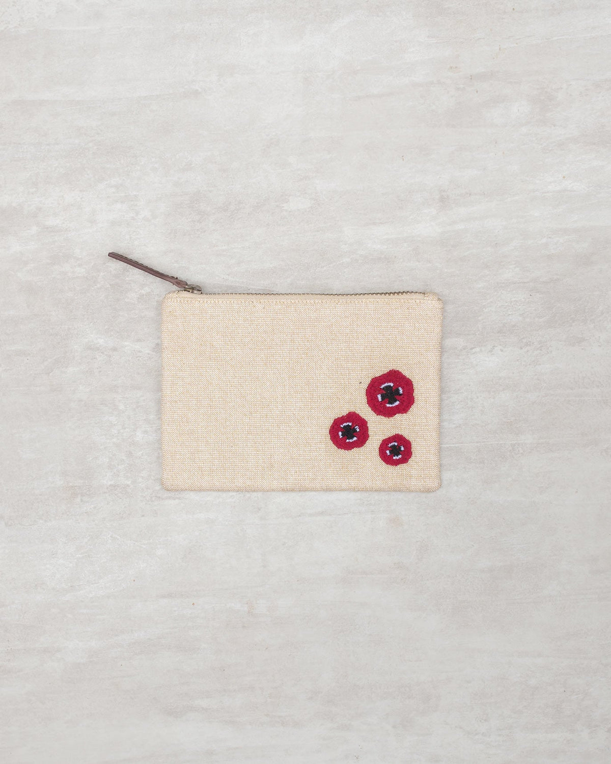 Embroidered with bright poppies, this pouch is good for the little things that have a knack of disappearing