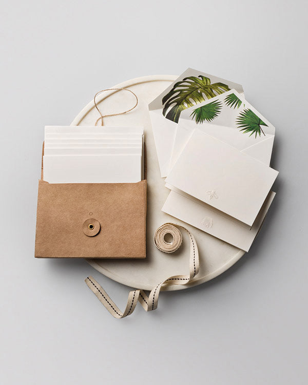 There are pineapple stickers, ten cards embossed with a little elephant or bee to scribble in, and ten envelopes with a fun palm flap, making it a cohesive little bundle