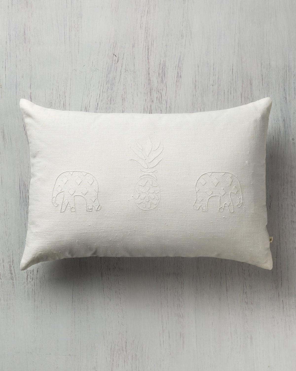 • Printed on grey cotton voile, this deliciously soft cushion cover comes printed with elephants and a pineapple as an ode to the tropics