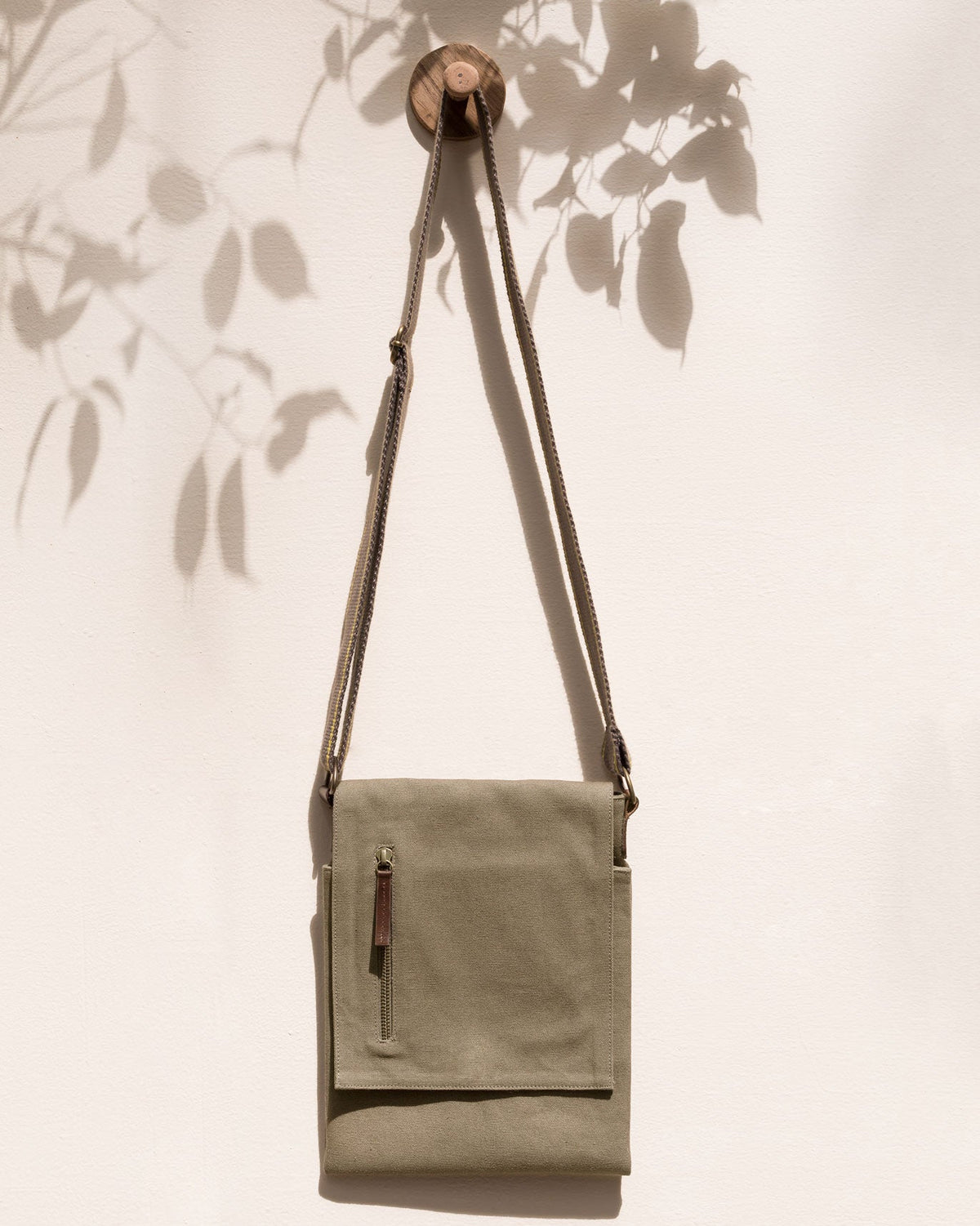 A season-neutral walnut canvas messenger that's as easy on the eye as it on the shoulder owing to its cheery cotton webbing strap