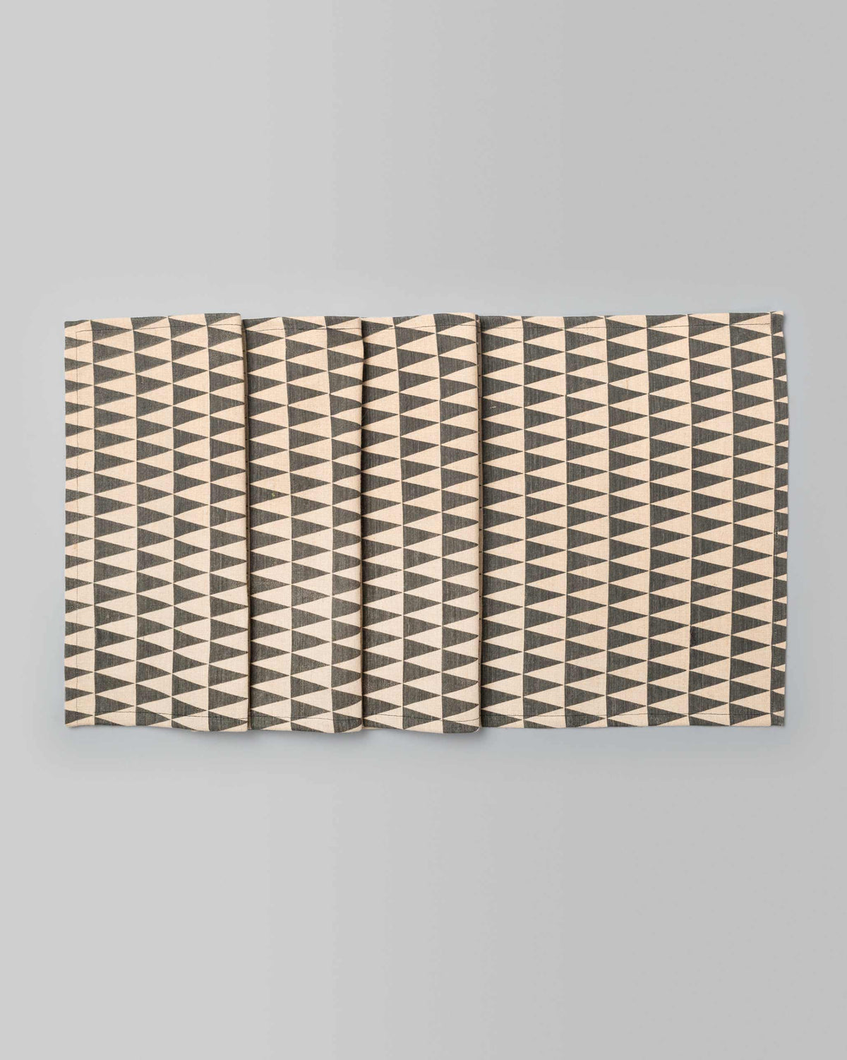 • In jute cotton, this comes in Nicobar's signature oatmeal and charcoal triangle print