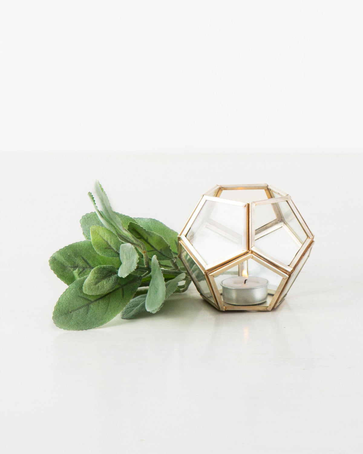 • Our littlest glass twilight votive features accents of brass and is perfect as a centerpiece for a dinner for two