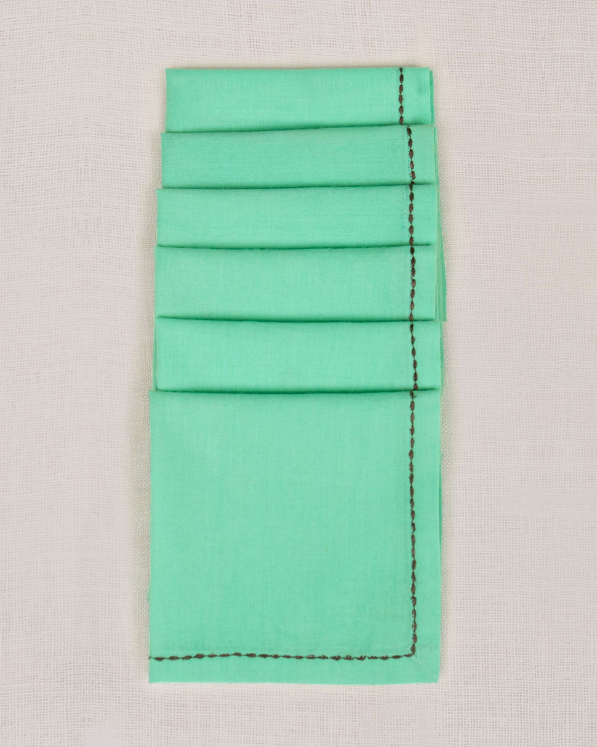 Verandah Dinner Napkins (Set of 6) - Aqua & Ivory