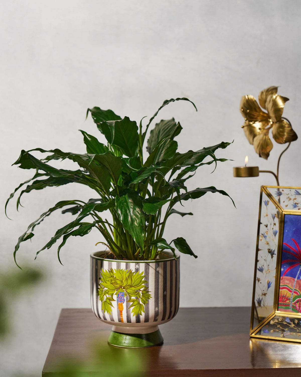 • The Foliage Planter comes in our signature stripes and features palm motifs inspired by our travels to Morocco.