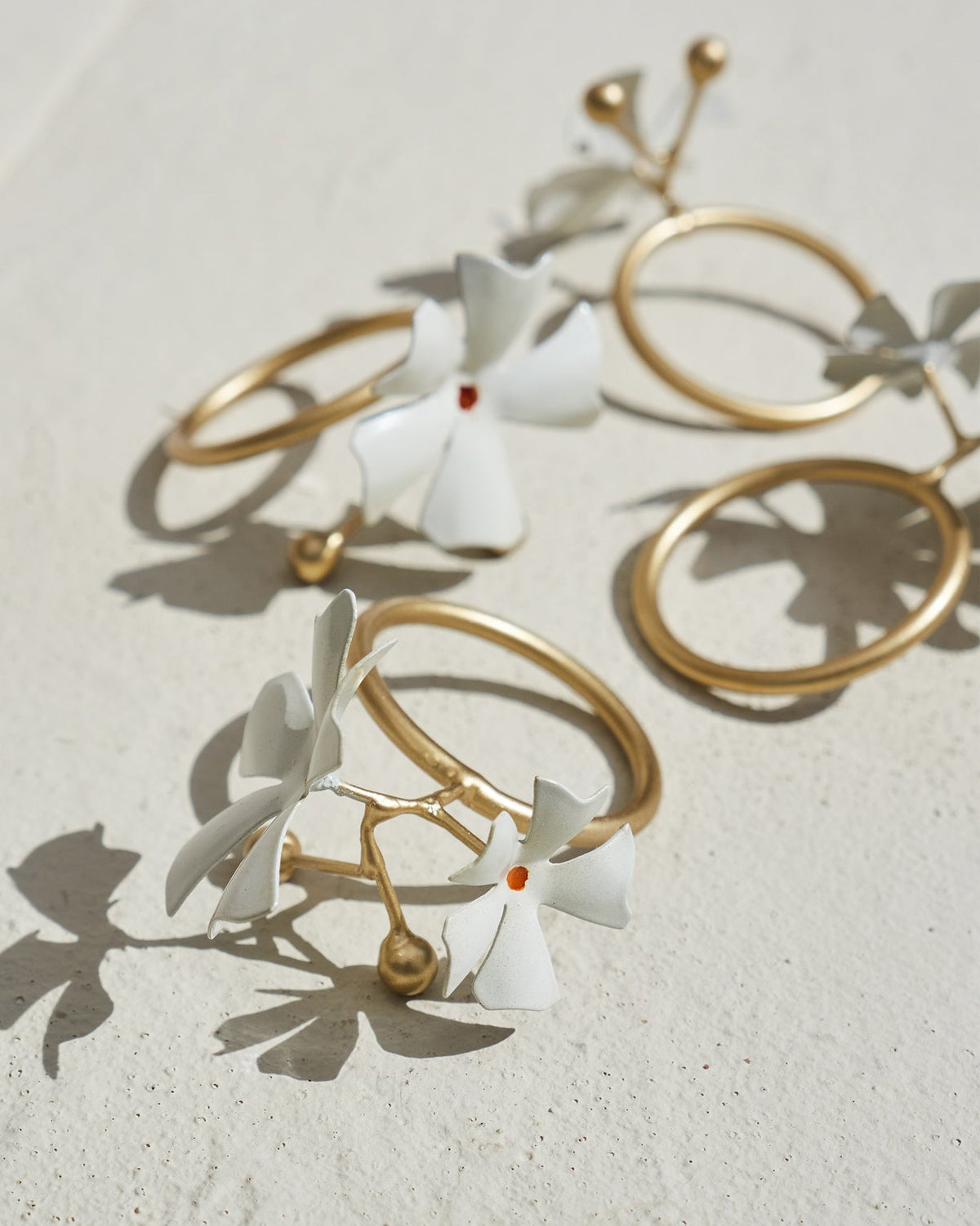 • Crafted in brass with a gold and enamel finish, this set of four napkin rings will elevate your summer dining setting.