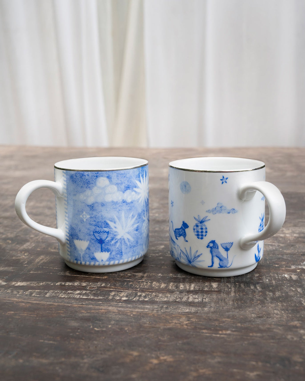• A set of two mugs in icy blue & white, a pure form of whimsy featuring stylised flora and fauna of the Himalayas