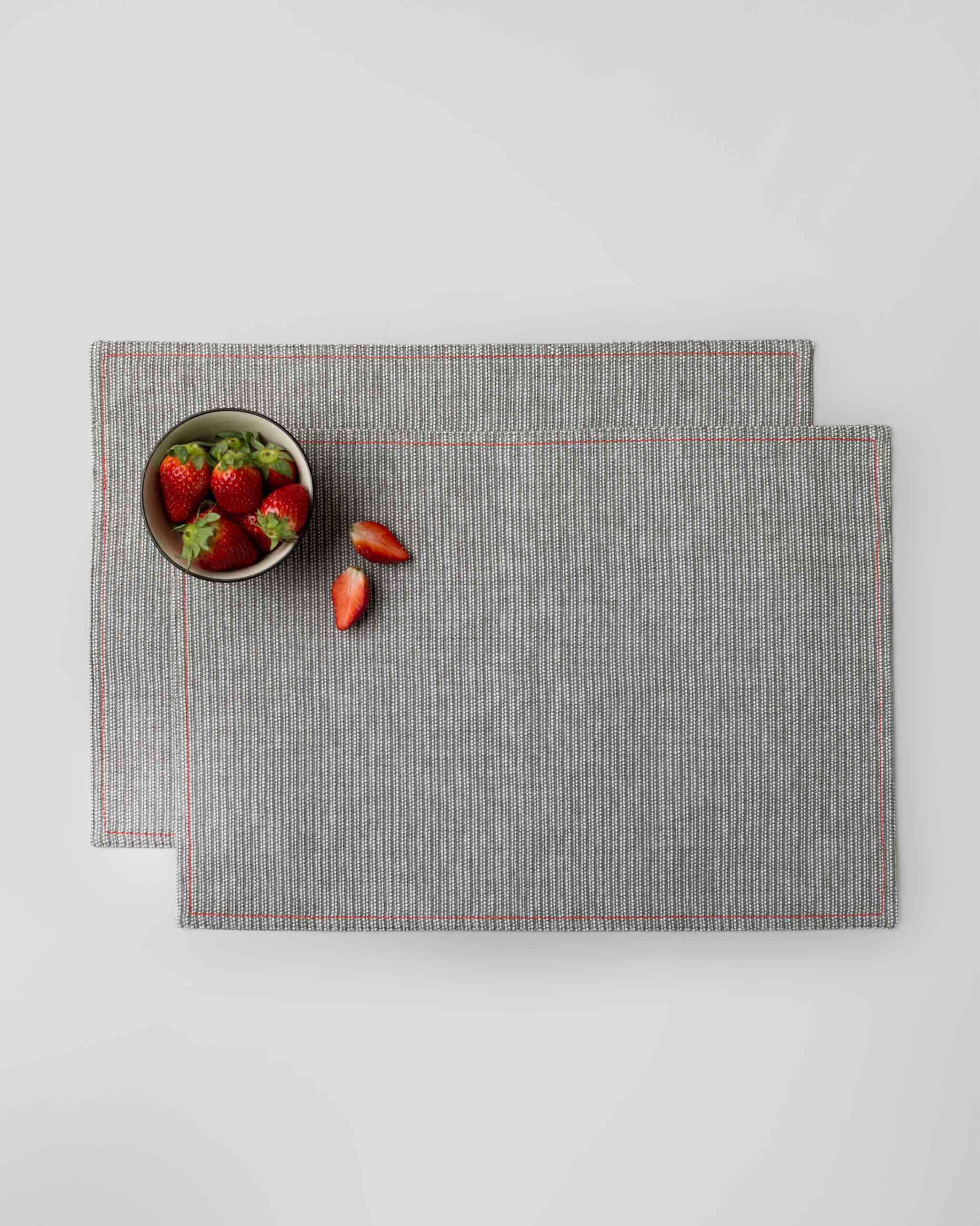 • Here is a set of two ivory and charcoal placemats in woven, yarn-dyed cotton that'll sit right with any occasion in the offing