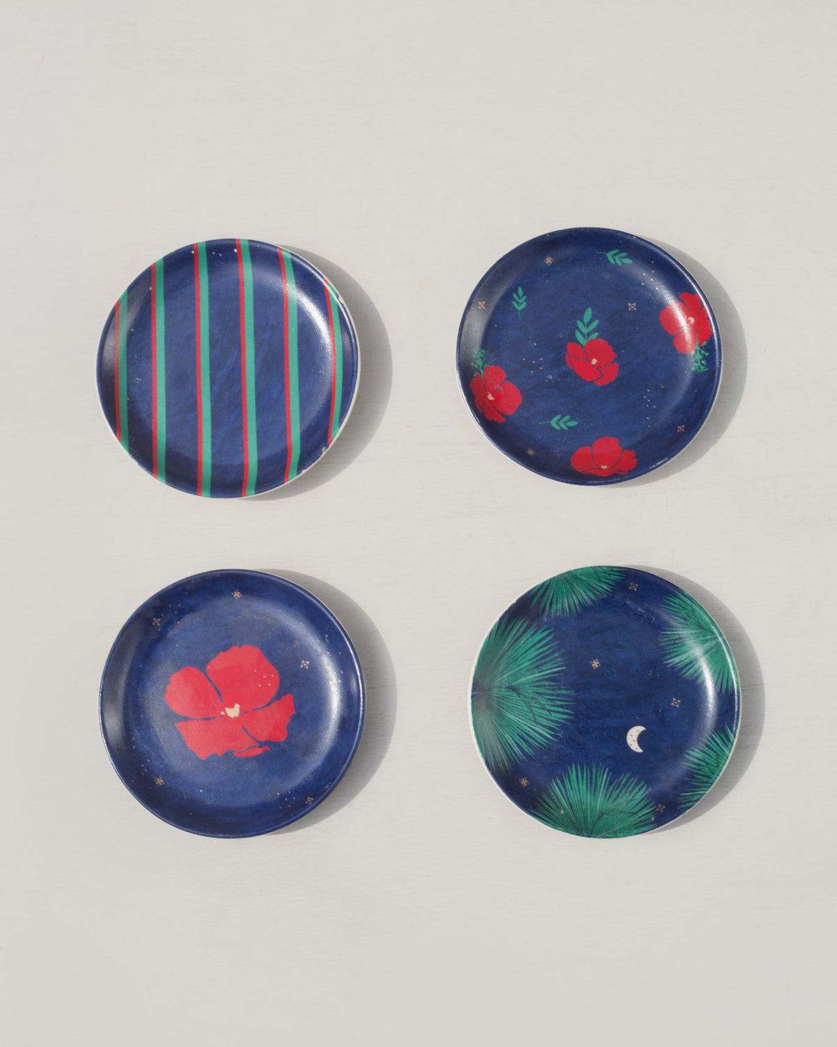 • In a deep midnight blue with poppies and palms printed on, these tea plates will elevate every table setting