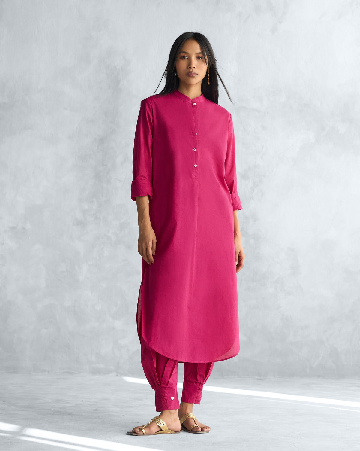 This easy-wearing kurta falls below the knee, and with its body-skimming fit, it pairs perfectly with pyjamas or a pair of jeans