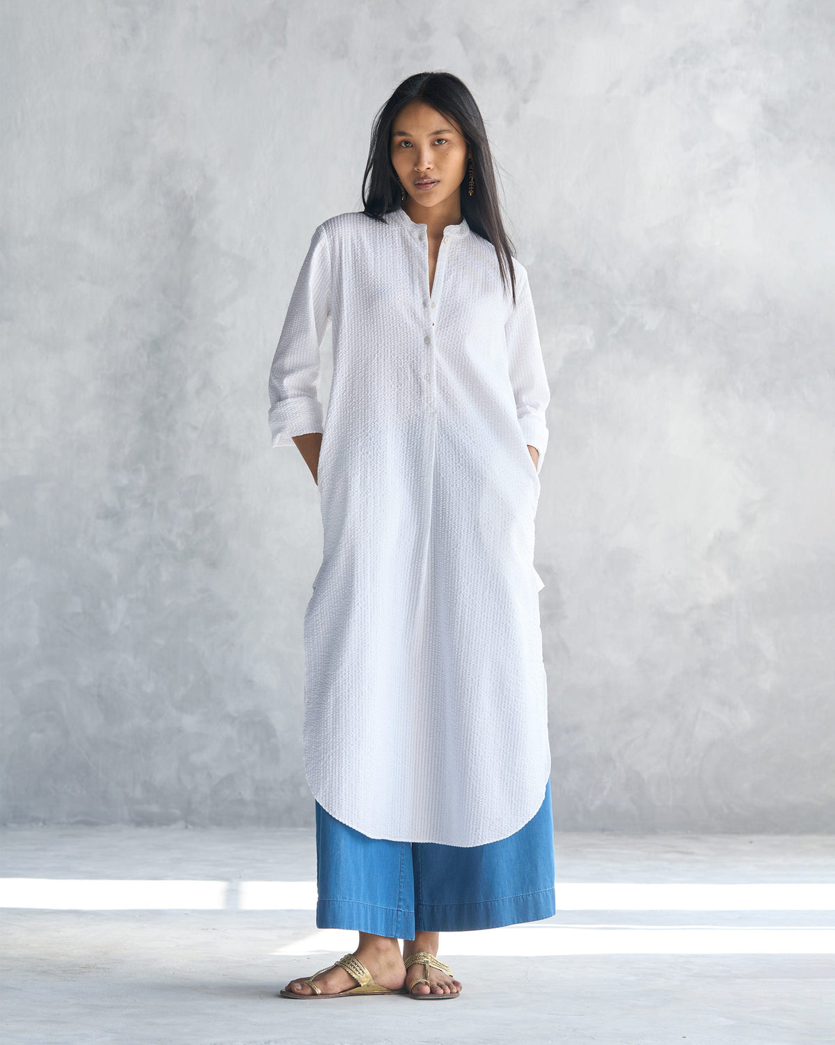 This easy-wearing kurta falls below the knee, and with its body-skimming fit, it pairs perfectly with pyjamas or a pair of jeans