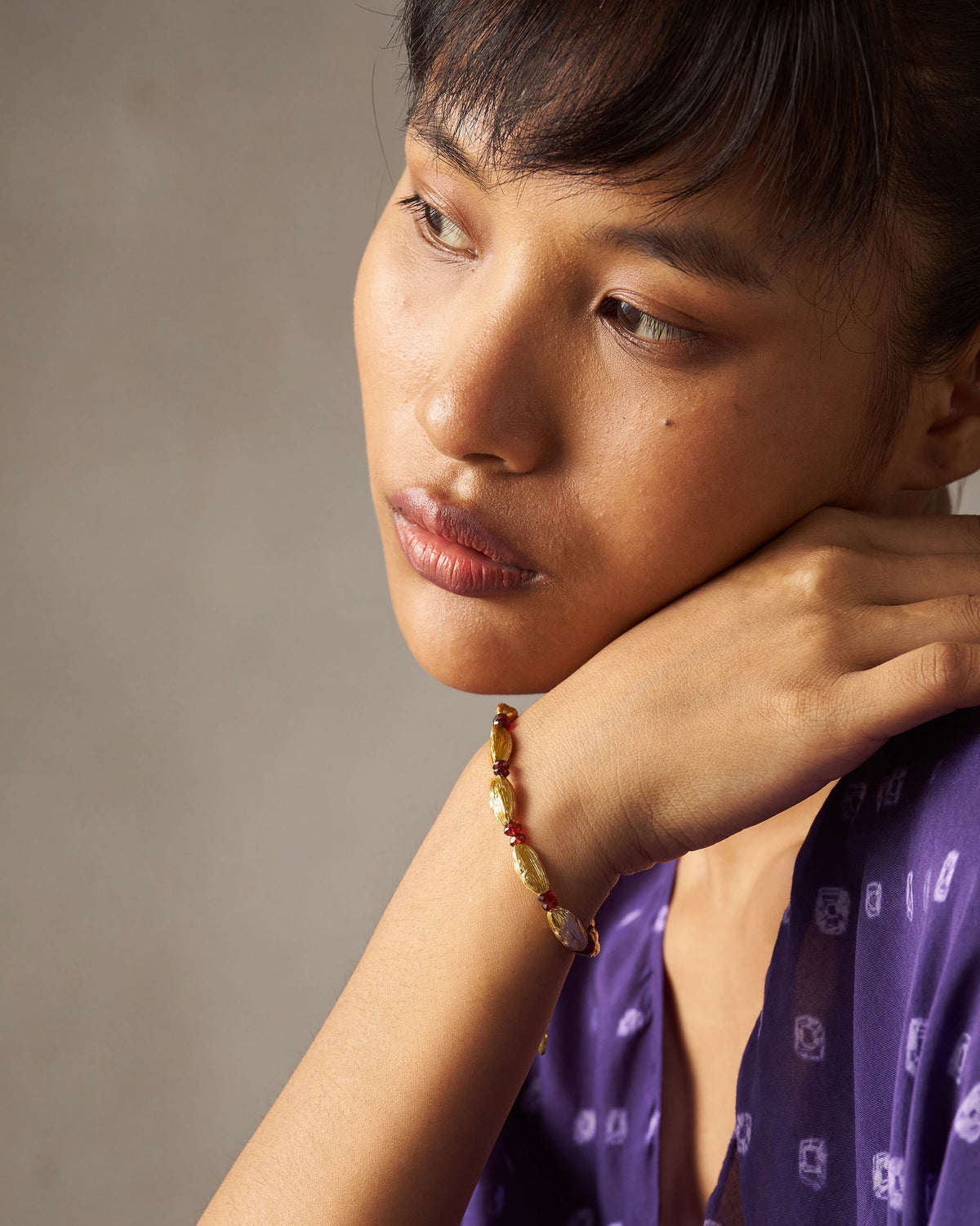{"id":7831829414068,"title":"Elaichi Garnet Bracelet - Gold","handle":"elaichi-garnet-bracelet-gold","description":"\u003cul\u003e\n\u003cli\u003eWe've taken our love for spices and added strings of shimmering elaichi with semi-precious gemstones along plated gold to create a twinkling piece to take from desk to dancing.\n\u003c\/li\u003e\n\u003cli\u003eDainty and delicate, the garnet stones and gilded elaichi plays well with other pieces of complementing bangles and bracelets.\n\u003c\/li\u003e\n\u003cli\u003eNote: Give your nickel-free brass jewellery a little extra TLC by storing it in its original packaging, and keeping it free from moisture or liquids of any kind.\n\u003c\/li\u003e\n\u003cli\u003eComes in a gift box.\u003c\/li\u003e\n\u003c\/ul\u003e","published_at":"2024-09-09T23:03:47+05:30","created_at":"2024-08-29T11:38:55+05:30","vendor":"Nicobar","type":"Bracelets","tags":["Campaign_Comesinbox","campaign_lisamishrasale","Campaign_Urmi","campaign_urmidagasale","campaign_wedding","Category_Gift Box","COLLECTION_EOSS25","COLLECTION_Marrakech","elaichi-garnet-bracelet-goldNBI035862","eoss_just_added","Filtercategory_Jewellery","Filterclass_Bracelets","Filteroccasion_Festive","Filteroccasion_Weekend Party","Filtersubcategory_Bangles \u0026 Bracelets","Filtersubclass_Bracelets","Gender_Female","Material Group_Brass","MATERIAL_Brass \u0026 18K Gold Plating","notify_me_on","oldgstprice_5000","pdpcollection_Marrakech","Product_others","sale_eoss13jun25","sale_eoss25jun25","sale_eoss25jun25_1","sale_flashsale","showsimilarproductfirst"],"price":7500,"price_min":7500,"price_max":7500,"available":false,"price_varies":false,"compare_at_price":null,"compare_at_price_min":0,"compare_at_price_max":0,"compare_at_price_varies":false,"variants":[{"id":43526484558004,"title":"Gold \/ 22 Cm","option1":"Gold","option2":"22 Cm","option3":null,"sku":"NBI035862","requires_shipping":true,"taxable":true,"featured_image":null,"available":false,"name":"Elaichi Garnet Bracelet - Gold - Gold \/ 22 Cm","public_title":"Gold \/ 22 Cm","options":["Gold","22 Cm"],"price":7500,"weight":0,"compare_at_price":null,"inventory_management":"shopify","barcode":null,"requires_selling_plan":false,"selling_plan_allocations":[],"quantity_rule":{"min":1,"max":null,"increment":1}}],"images":["\/\/global.nicobar.com\/cdn\/shop\/files\/NBI035862_1_214f9893-a6f7-49f7-8954-fe36f12292f9.jpg?v=1729261095","\/\/global.nicobar.com\/cdn\/shop\/files\/NBI035862_4_3592aec9-c0f1-4236-8f90-83e4c7a6a89b.jpg?v=1729261095","\/\/global.nicobar.com\/cdn\/shop\/files\/NBI035862_2_9991d5df-e3d4-4dd7-a908-92071bbf89c5.jpg?v=1729261095","\/\/global.nicobar.com\/cdn\/shop\/files\/NBI035862_3_2e014b9c-a146-4198-80f0-a99abdee2426.jpg?v=1729261095"],"featured_image":"\/\/global.nicobar.com\/cdn\/shop\/files\/NBI035862_1_214f9893-a6f7-49f7-8954-fe36f12292f9.jpg?v=1729261095","options":["Color","Size"],"media":[{"alt":null,"id":30878540857524,"position":1,"preview_image":{"aspect_ratio":0.8,"height":2574,"width":2058,"src":"\/\/global.nicobar.com\/cdn\/shop\/files\/NBI035862_1_214f9893-a6f7-49f7-8954-fe36f12292f9.jpg?v=1729261095"},"aspect_ratio":0.8,"height":2574,"media_type":"image","src":"\/\/global.nicobar.com\/cdn\/shop\/files\/NBI035862_1_214f9893-a6f7-49f7-8954-fe36f12292f9.jpg?v=1729261095","width":2058},{"alt":null,"id":30878540923060,"position":2,"preview_image":{"aspect_ratio":0.8,"height":2574,"width":2058,"src":"\/\/global.nicobar.com\/cdn\/shop\/files\/NBI035862_4_3592aec9-c0f1-4236-8f90-83e4c7a6a89b.jpg?v=1729261095"},"aspect_ratio":0.8,"height":2574,"media_type":"image","src":"\/\/global.nicobar.com\/cdn\/shop\/files\/NBI035862_4_3592aec9-c0f1-4236-8f90-83e4c7a6a89b.jpg?v=1729261095","width":2058},{"alt":null,"id":30878540988596,"position":3,"preview_image":{"aspect_ratio":0.8,"height":2574,"width":2058,"src":"\/\/global.nicobar.com\/cdn\/shop\/files\/NBI035862_2_9991d5df-e3d4-4dd7-a908-92071bbf89c5.jpg?v=1729261095"},"aspect_ratio":0.8,"height":2574,"media_type":"image","src":"\/\/global.nicobar.com\/cdn\/shop\/files\/NBI035862_2_9991d5df-e3d4-4dd7-a908-92071bbf89c5.jpg?v=1729261095","width":2058},{"alt":null,"id":30878541119668,"position":4,"preview_image":{"aspect_ratio":0.8,"height":2574,"width":2058,"src":"\/\/global.nicobar.com\/cdn\/shop\/files\/NBI035862_3_2e014b9c-a146-4198-80f0-a99abdee2426.jpg?v=1729261095"},"aspect_ratio":0.8,"height":2574,"media_type":"image","src":"\/\/global.nicobar.com\/cdn\/shop\/files\/NBI035862_3_2e014b9c-a146-4198-80f0-a99abdee2426.jpg?v=1729261095","width":2058}],"requires_selling_plan":false,"selling_plan_groups":[],"content":"\u003cul\u003e\n\u003cli\u003eWe've taken our love for spices and added strings of shimmering elaichi with semi-precious gemstones along plated gold to create a twinkling piece to take from desk to dancing.\n\u003c\/li\u003e\n\u003cli\u003eDainty and delicate, the garnet stones and gilded elaichi plays well with other pieces of complementing bangles and bracelets.\n\u003c\/li\u003e\n\u003cli\u003eNote: Give your nickel-free brass jewellery a little extra TLC by storing it in its original packaging, and keeping it free from moisture or liquids of any kind.\n\u003c\/li\u003e\n\u003cli\u003eComes in a gift box.\u003c\/li\u003e\n\u003c\/ul\u003e"}