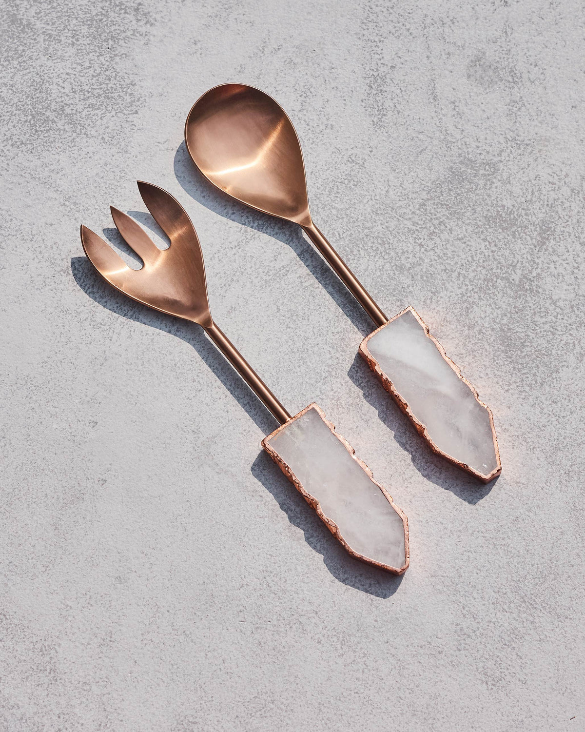Elevate your salad presentation with the Pacific Salad Servers, perfect for tossing leafy greens. Crafted from agate and stainless steel, these servers infuse an elegant touch into your dining experience. The rich copper finish adds a timeless appeal, while the handles feature a leaping salmon in a copper hue. Make this exquisite set an essential addition to your tableware collection.