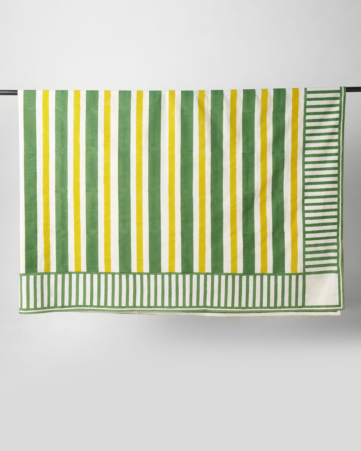 • A striped celebration in green and yellow—this table cover brings an island mood to your meals.
