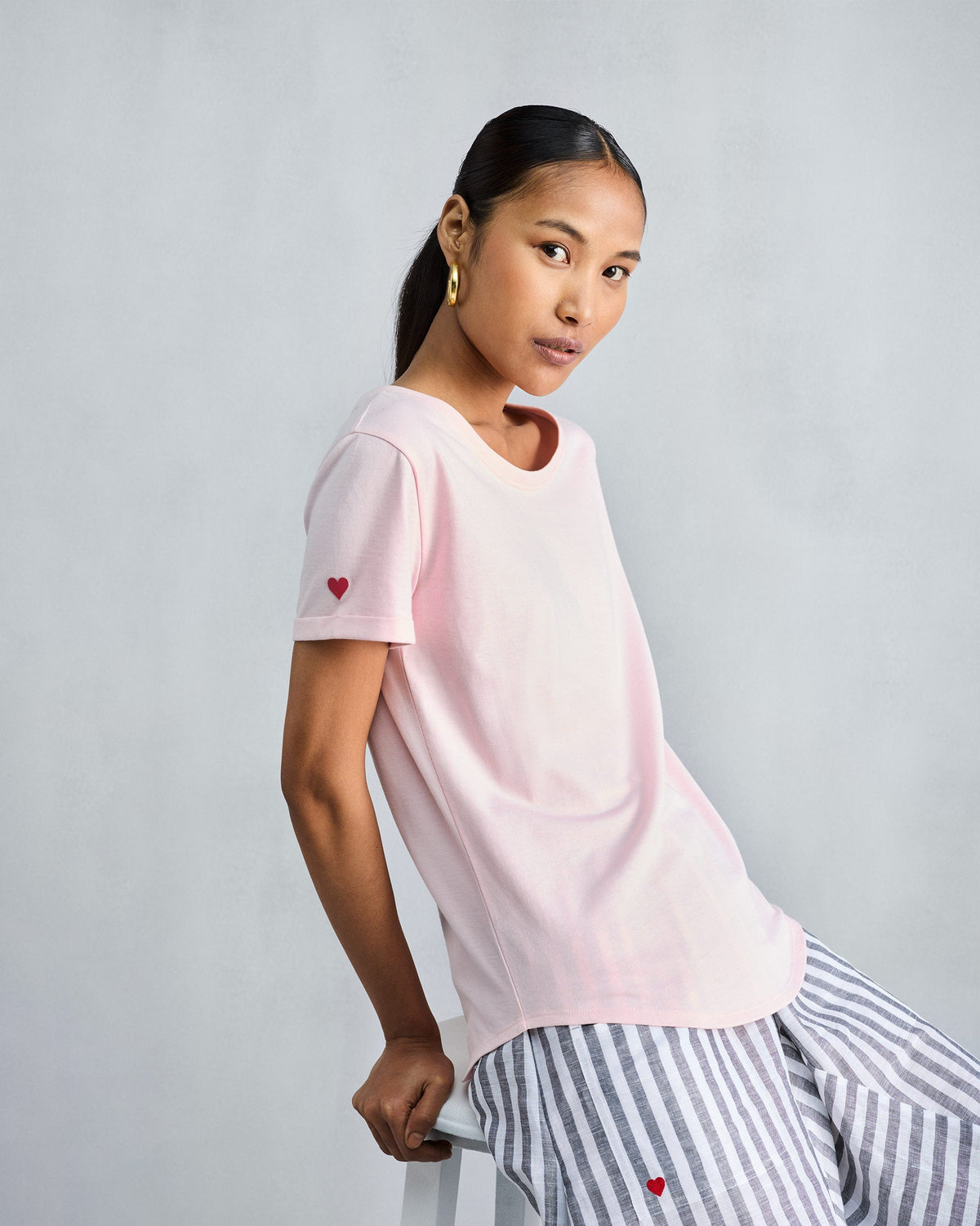 Basics that are anything but basic; a comfy blush pink cotton tee that promises to be the hardest working piece in your closet.