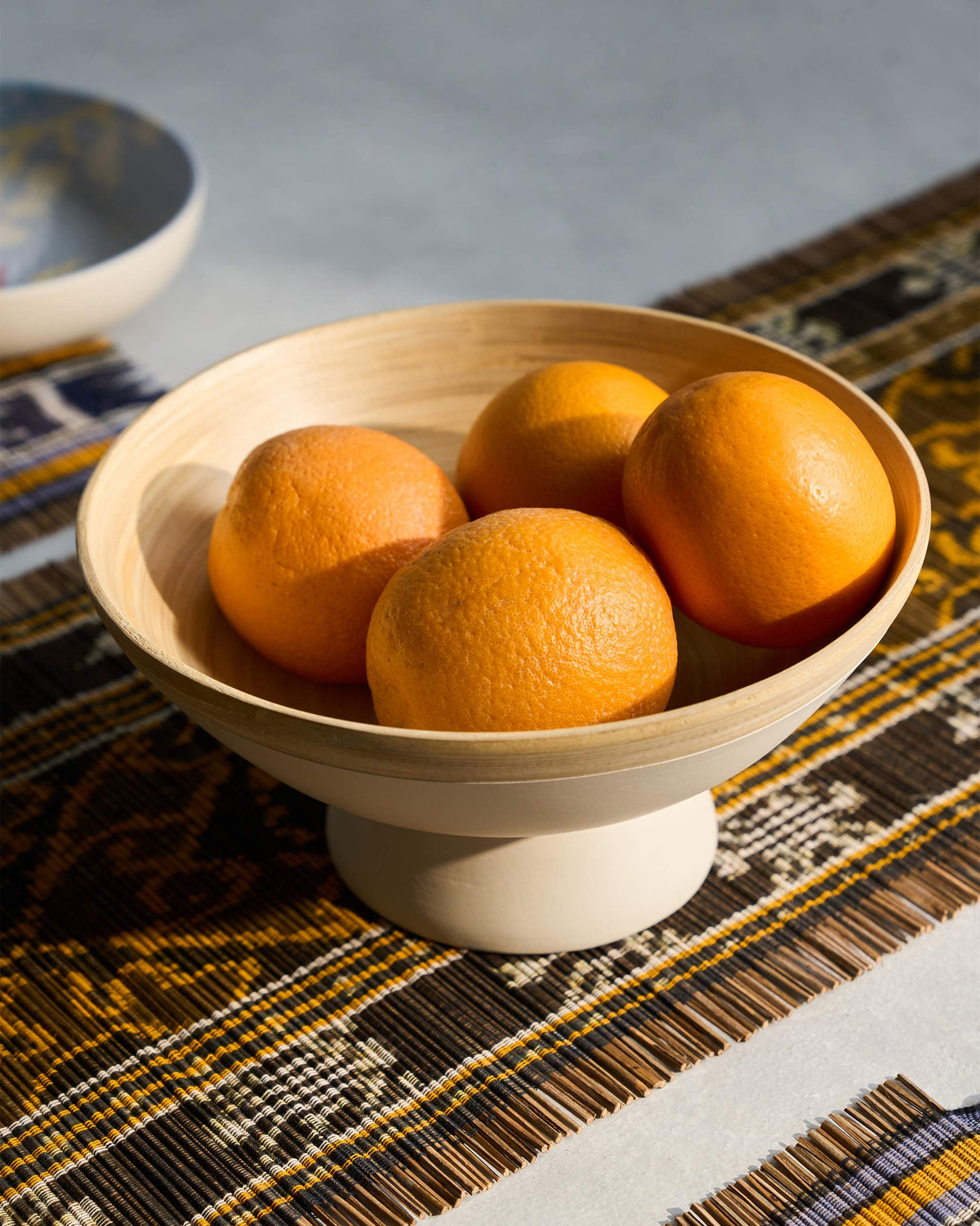 Our Phoenix fruit bowl has a beautiful ivory colour on the outside. The inner side shows the natural colour of bamboo. It is simple, classy and beautiful.