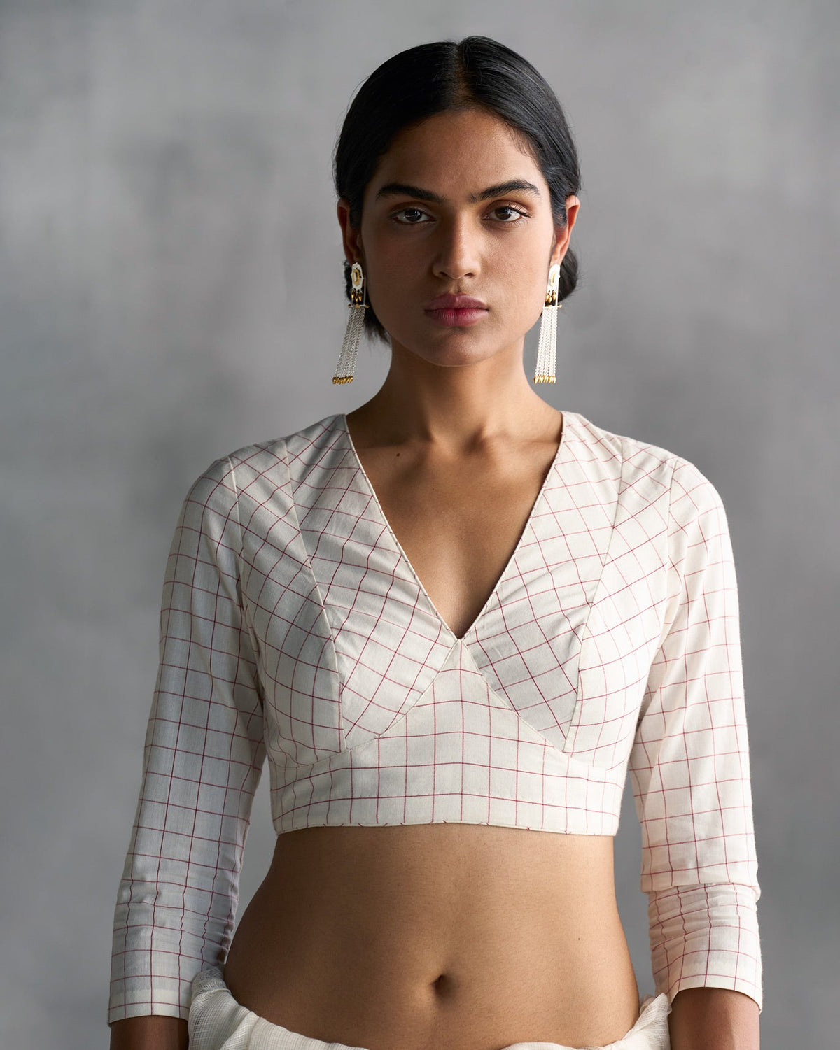 • A classic blouse with regular red and white checks, the simplicity of which will see you through plenty of outfits and occasions