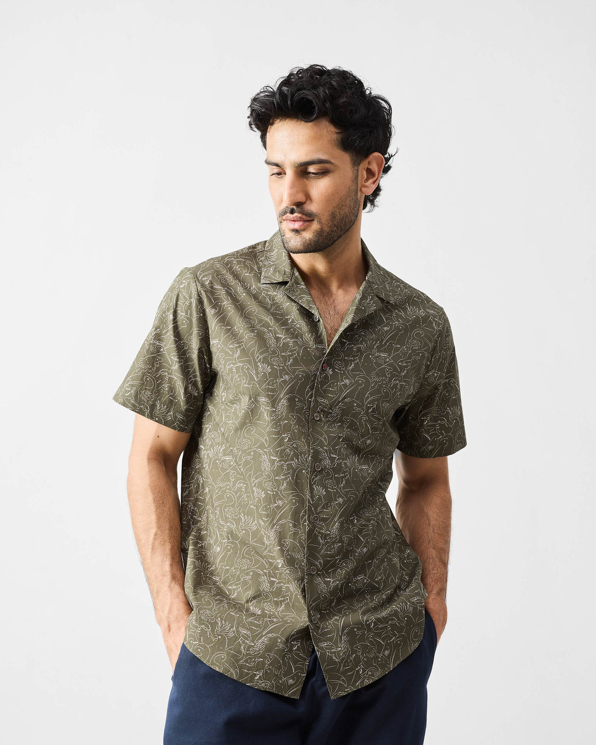 Cut from 100% cotton, this shirt takes flight with an all-over olive and white bird print—camouflage for the curious at heart. Blending the calm of the desert with the wild spirit of the jungle, Safar is a collection designed for exploration—capturing the journey within, before it even begins.