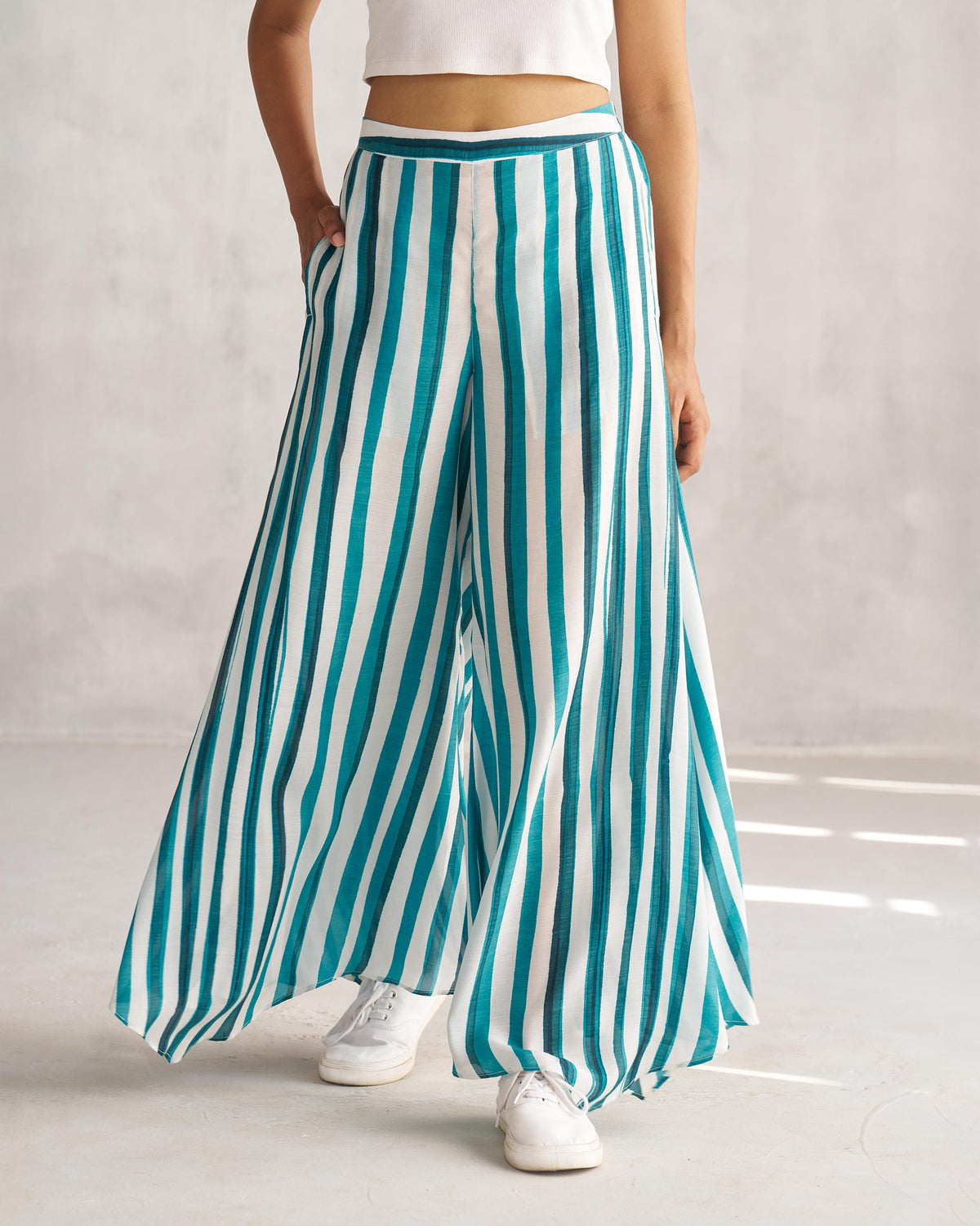 With an eye-catching palette of teal and white with a stylish silhouette, these pants are sure to become your new go-to for casual outings and weekend adventures.