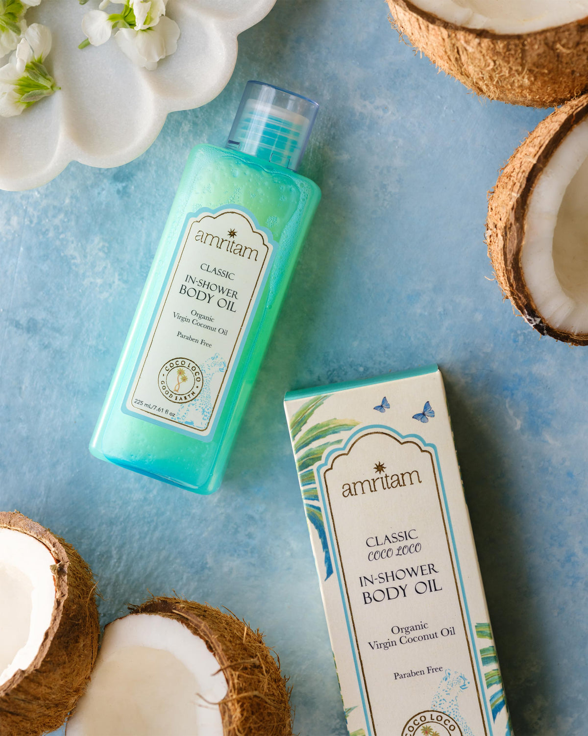 {"id":7368681750708,"title":"Amritam Classic In-Shower Body Oil","handle":"amritam-classic-in-shower-body-oil","description":"\u003cul\u003e\n\u003cli\u003eA lightweight, organic virgin coconut oil delicately infused with fragrant citrus oils; especially comforting after a swim\u003c\/li\u003e\n\u003cli\u003eAll ingredients are organic, natural, and COSMOS-certified; formulated to moisturise and cleanse without disturbing skin's natural microbiome\u003c\/li\u003e\n\u003cli\u003eApply daily on wet skin during a shower, rinse as normal and pat dry' Or rinse off or leave on if soaking the sun\u003c\/li\u003e\n\u003cli\u003eWe are donating 5% of net sales proceeds from Amritam Coco Loco towards Recycle India Foundations environmental initiatives. Plus, in an effort to reduce wastage, we are offering a gift in exchange for five empty bottles of Amritam Coco Loco dropped off at select Nicobar stores\u003c\/li\u003e\n\u003c\/ul\u003e","published_at":"2023-04-11T15:19:53+05:30","created_at":"2023-03-26T23:25:23+05:30","vendor":"Nicobar","type":"Coco","tags":["amritam-classic-in-shower-body-oilNBI027563","Campaign_Flashback","CATEGORY_Self Love","COLLECTION_Cocoloco","COLLECTION_EOSS25","eoss_just_added","eosspush_090724","oldgstprice_2800","Product_Others","sale_flashsale"],"price":4000,"price_min":4000,"price_max":4000,"available":false,"price_varies":false,"compare_at_price":null,"compare_at_price_min":0,"compare_at_price_max":0,"compare_at_price_varies":false,"variants":[{"id":42223997223092,"title":"225 ml","option1":"225 ml","option2":null,"option3":null,"sku":"NBI027563","requires_shipping":true,"taxable":true,"featured_image":null,"available":false,"name":"Amritam Classic In-Shower Body Oil - 225 ml","public_title":"225 ml","options":["225 ml"],"price":4000,"weight":0,"compare_at_price":null,"inventory_management":"shopify","barcode":null,"requires_selling_plan":false,"selling_plan_allocations":[],"quantity_rule":{"min":1,"max":null,"increment":1}}],"images":["\/\/global.nicobar.com\/cdn\/shop\/files\/3_9edacaed-0574-4e12-8c7c-761457b57c20.jpg?v=1724678040","\/\/global.nicobar.com\/cdn\/shop\/files\/1_c19986c0-ba49-49d3-a6f1-99ed14d7e3e0.jpg?v=1724678040","\/\/global.nicobar.com\/cdn\/shop\/files\/2_00640b41-869d-419b-9565-0f1ccc3874d6.jpg?v=1724678040","\/\/global.nicobar.com\/cdn\/shop\/files\/4_146fae40-a3d2-4e35-80c5-5f278c0bbd3d.jpg?v=1724678040"],"featured_image":"\/\/global.nicobar.com\/cdn\/shop\/files\/3_9edacaed-0574-4e12-8c7c-761457b57c20.jpg?v=1724678040","options":["Size"],"media":[{"alt":null,"id":30680416846004,"position":1,"preview_image":{"aspect_ratio":0.8,"height":2574,"width":2058,"src":"\/\/global.nicobar.com\/cdn\/shop\/files\/3_9edacaed-0574-4e12-8c7c-761457b57c20.jpg?v=1724678040"},"aspect_ratio":0.8,"height":2574,"media_type":"image","src":"\/\/global.nicobar.com\/cdn\/shop\/files\/3_9edacaed-0574-4e12-8c7c-761457b57c20.jpg?v=1724678040","width":2058},{"alt":null,"id":30680416878772,"position":2,"preview_image":{"aspect_ratio":0.8,"height":2574,"width":2058,"src":"\/\/global.nicobar.com\/cdn\/shop\/files\/1_c19986c0-ba49-49d3-a6f1-99ed14d7e3e0.jpg?v=1724678040"},"aspect_ratio":0.8,"height":2574,"media_type":"image","src":"\/\/global.nicobar.com\/cdn\/shop\/files\/1_c19986c0-ba49-49d3-a6f1-99ed14d7e3e0.jpg?v=1724678040","width":2058},{"alt":null,"id":30680416911540,"position":3,"preview_image":{"aspect_ratio":0.8,"height":2574,"width":2058,"src":"\/\/global.nicobar.com\/cdn\/shop\/files\/2_00640b41-869d-419b-9565-0f1ccc3874d6.jpg?v=1724678040"},"aspect_ratio":0.8,"height":2574,"media_type":"image","src":"\/\/global.nicobar.com\/cdn\/shop\/files\/2_00640b41-869d-419b-9565-0f1ccc3874d6.jpg?v=1724678040","width":2058},{"alt":null,"id":30680416944308,"position":4,"preview_image":{"aspect_ratio":0.8,"height":2574,"width":2058,"src":"\/\/global.nicobar.com\/cdn\/shop\/files\/4_146fae40-a3d2-4e35-80c5-5f278c0bbd3d.jpg?v=1724678040"},"aspect_ratio":0.8,"height":2574,"media_type":"image","src":"\/\/global.nicobar.com\/cdn\/shop\/files\/4_146fae40-a3d2-4e35-80c5-5f278c0bbd3d.jpg?v=1724678040","width":2058}],"requires_selling_plan":false,"selling_plan_groups":[],"content":"\u003cul\u003e\n\u003cli\u003eA lightweight, organic virgin coconut oil delicately infused with fragrant citrus oils; especially comforting after a swim\u003c\/li\u003e\n\u003cli\u003eAll ingredients are organic, natural, and COSMOS-certified; formulated to moisturise and cleanse without disturbing skin's natural microbiome\u003c\/li\u003e\n\u003cli\u003eApply daily on wet skin during a shower, rinse as normal and pat dry' Or rinse off or leave on if soaking the sun\u003c\/li\u003e\n\u003cli\u003eWe are donating 5% of net sales proceeds from Amritam Coco Loco towards Recycle India Foundations environmental initiatives. Plus, in an effort to reduce wastage, we are offering a gift in exchange for five empty bottles of Amritam Coco Loco dropped off at select Nicobar stores\u003c\/li\u003e\n\u003c\/ul\u003e"}