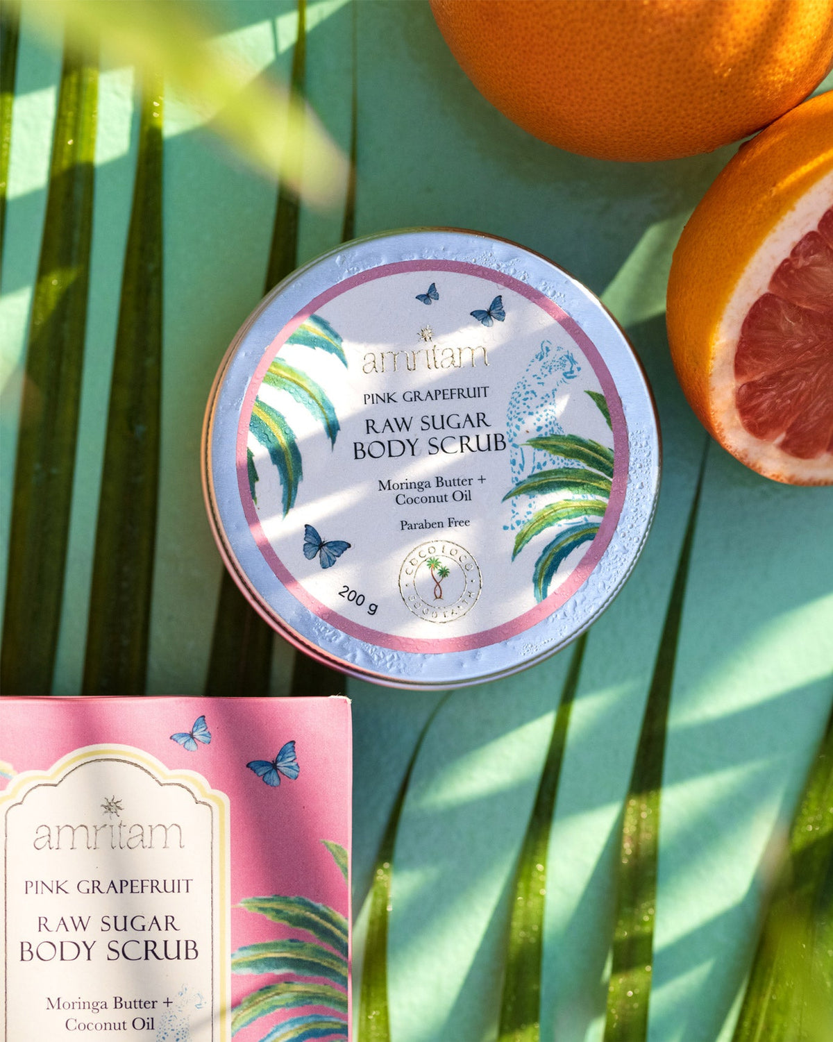 Enriched with the goodness of coconut oil, moringa, raw sugar, and grapefruit