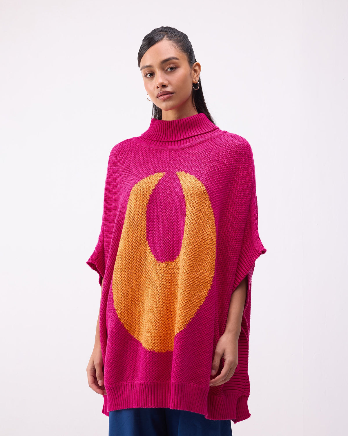 Chunky and chic in equal measure, the Baggy Sweater is a statement piece for the season. The vibrant fuchsia makes it pop wherever you go, and pairs perfectly with the orange motif on the front.