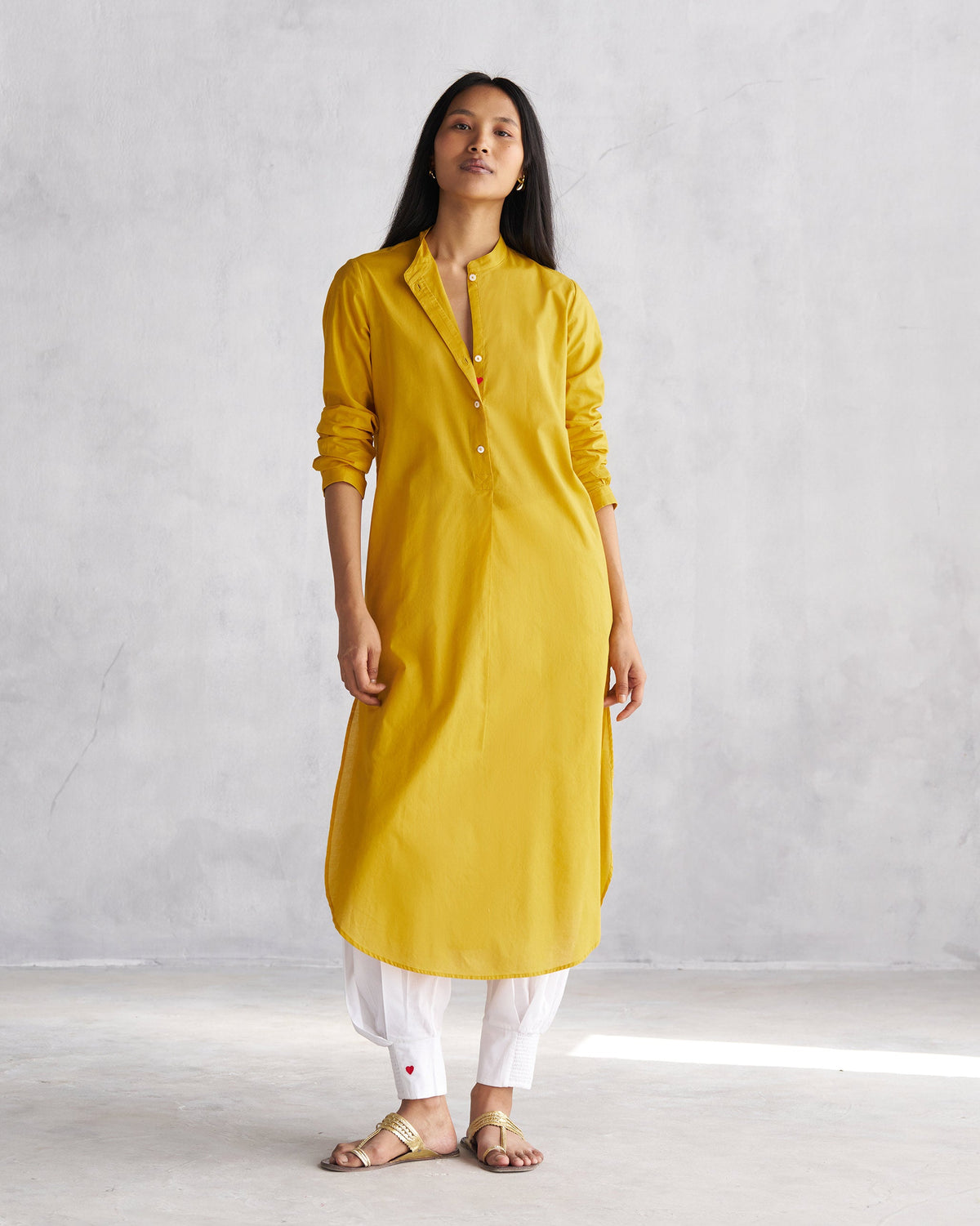 This easy-wearing kurta falls below the knee, and with its body-skimming fit, it pairs perfectly with pyjamas or a pair of jeans