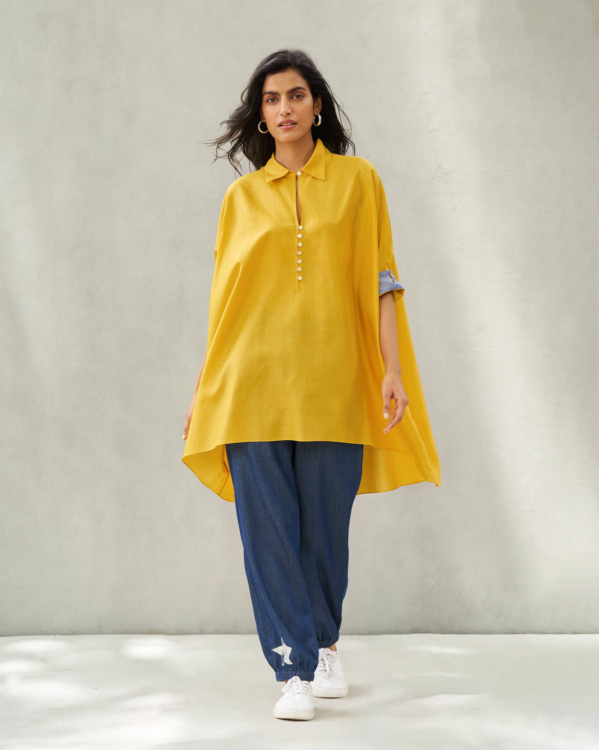 • Bright and cheery, the Hala Tunic beams in yellow cotton silk, making this one perfect for special celebrations.