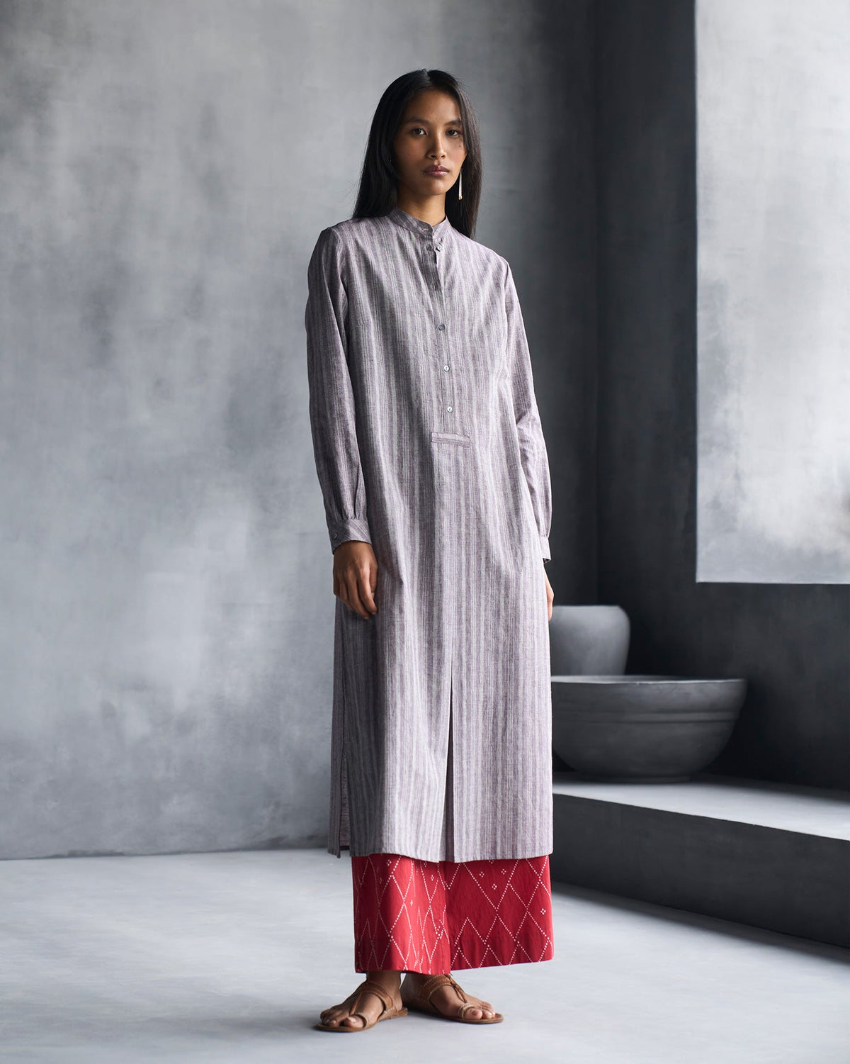 Feel the soft cotton whilst you don our mandarin collar kurta with grey stripes