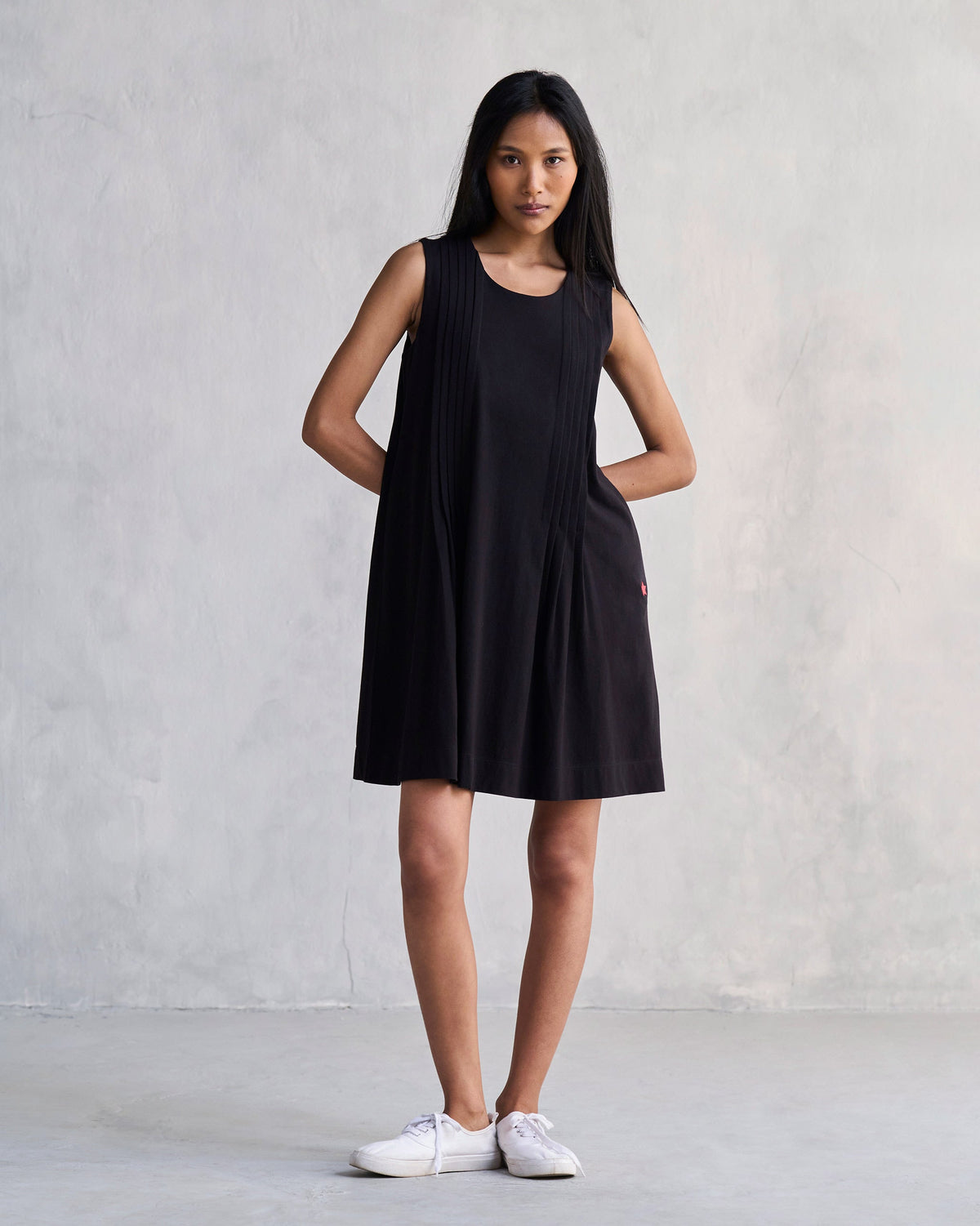 • The Pintuck Dress in black is a classic designed for day long comfort. Contemporary and hard to go wrong with, the relaxed fit leaves you feeling breezy all day.