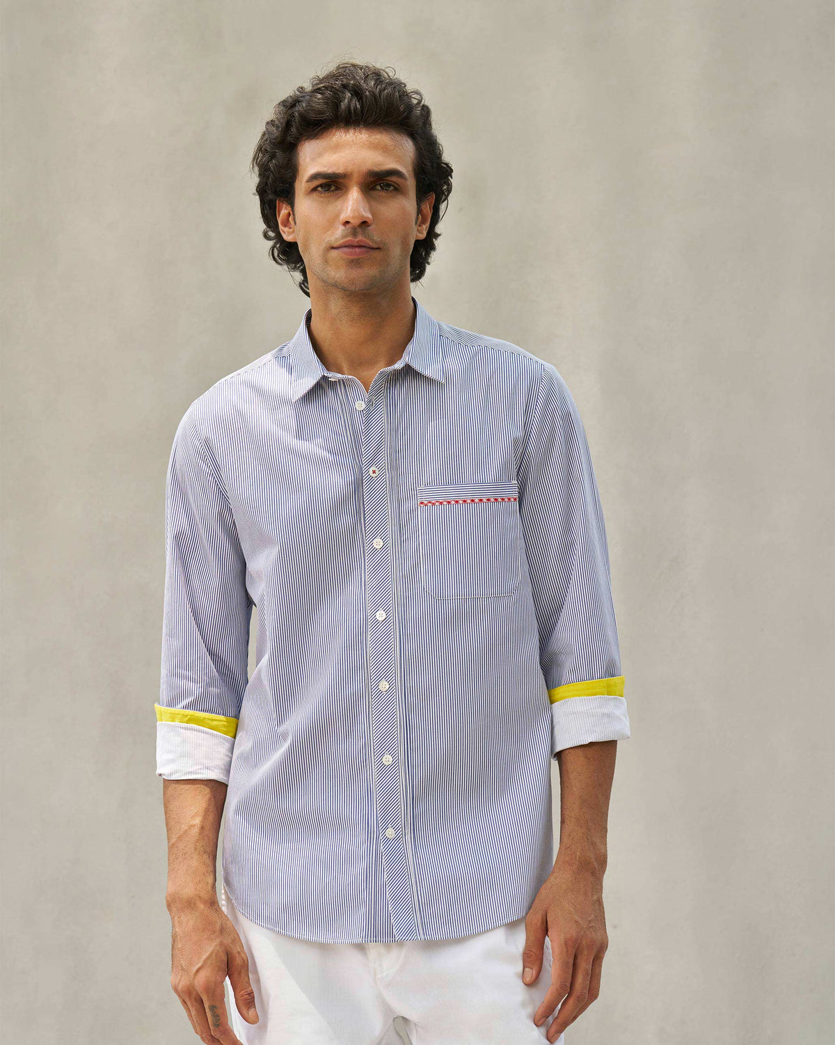 • The Rays Shirt features blue and white signature stripes all over. The classic design lends itself to work and play alike.