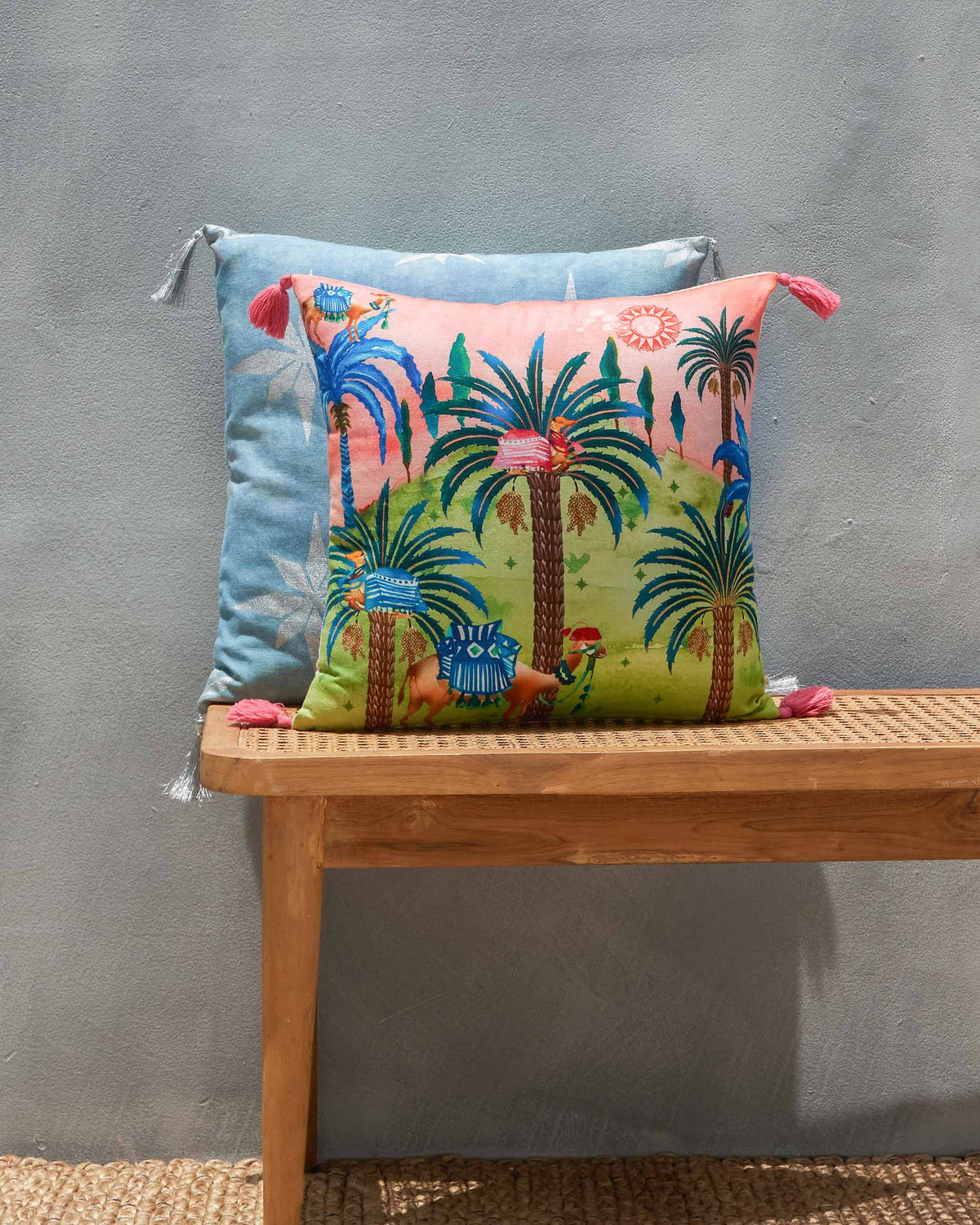 • The colours and textures of Morocco, with rich landscapes and traipsing camels inspires the vibrant design of the Sahara Cushion Cover.