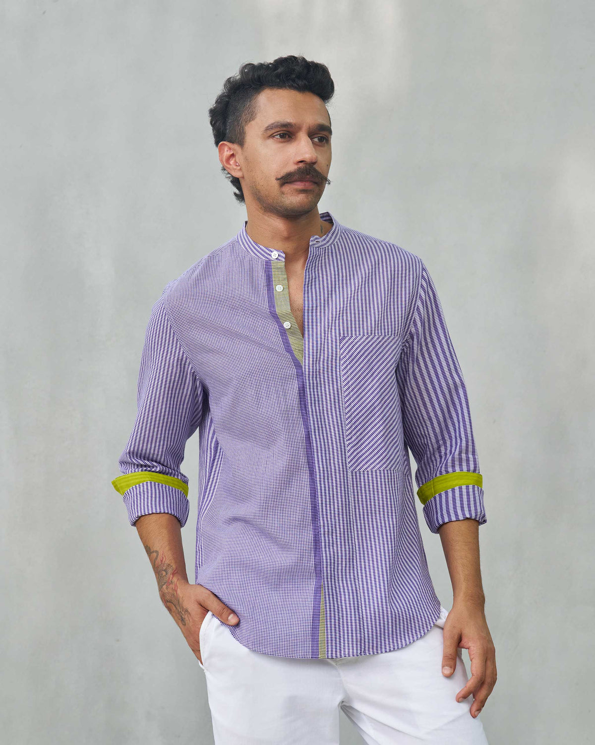 Add a touch of fun and personality to your summer wardrobe with the Summer Fridays Pocket Shirt in purple and white checks.
