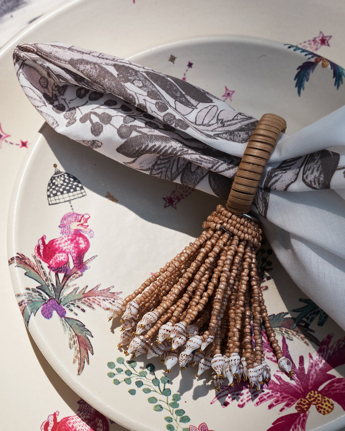 Your brunch setup needs Nicobar's Ubud Napkin ring to complete the look. Crafted with beads, rattan and shells, this one will instantly transport you to the beach.