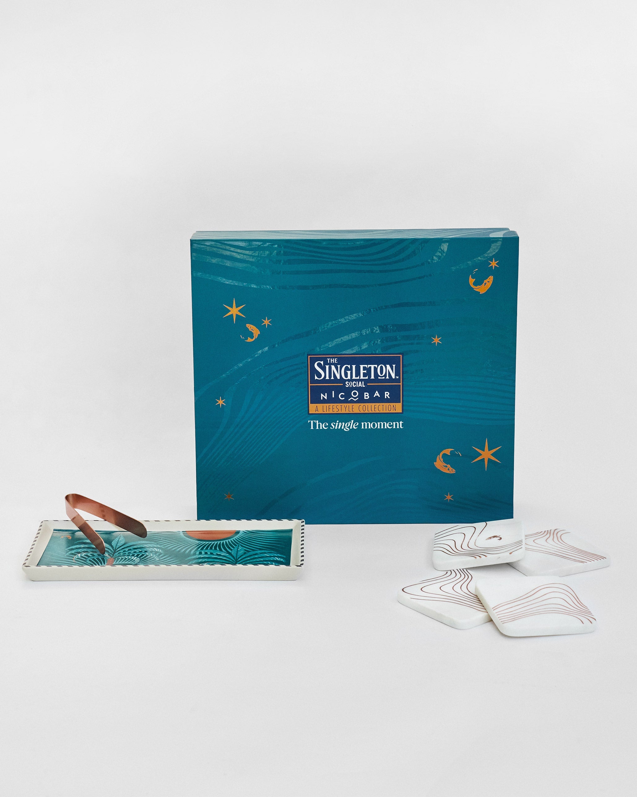The Caden Gift Set comes with the Caden Cookie Tray with a tong and the set of 4 Dusk Coasters.