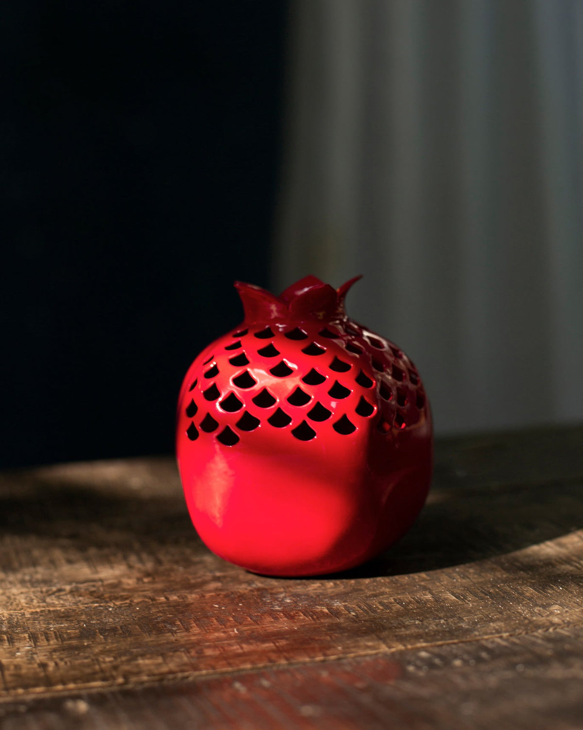 • Cast in iron, this gleaming pomegranate-inspired candle holder is a statement addition to your candle-lit dinners and festive nooks
