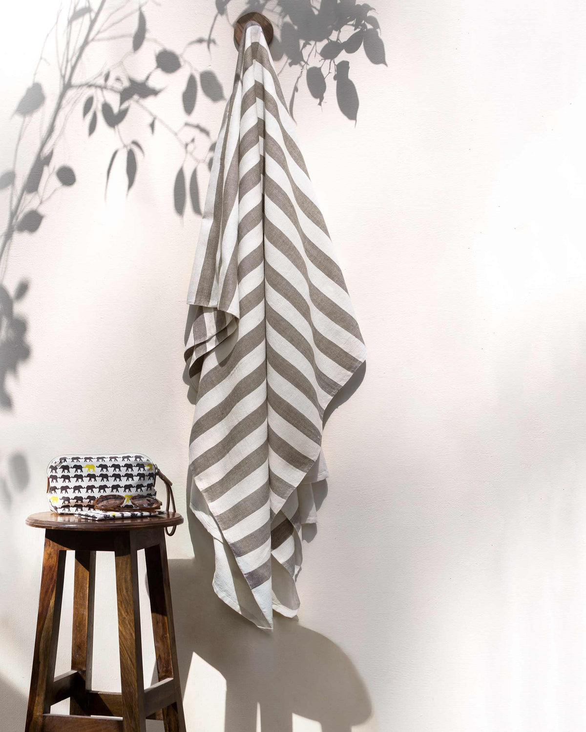 Fashioned after tree-lined beaches and walnut sands (evident in the stripe), this lightweight beach towel will double as a sarong or a cover on your beach bed